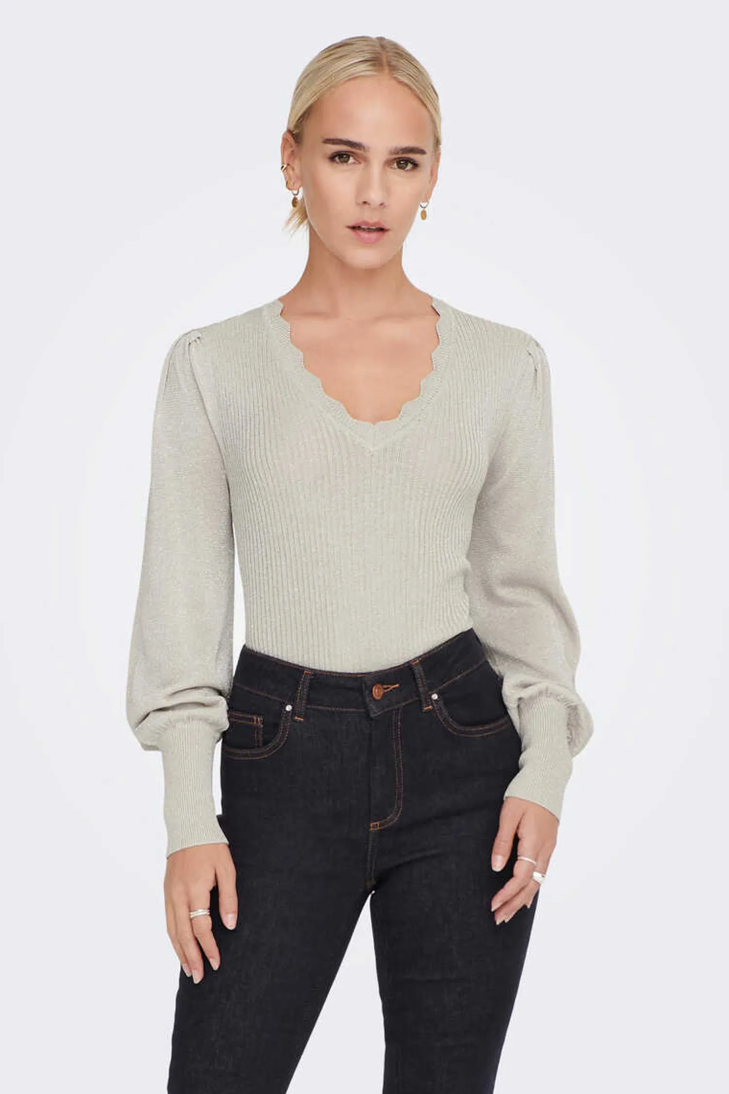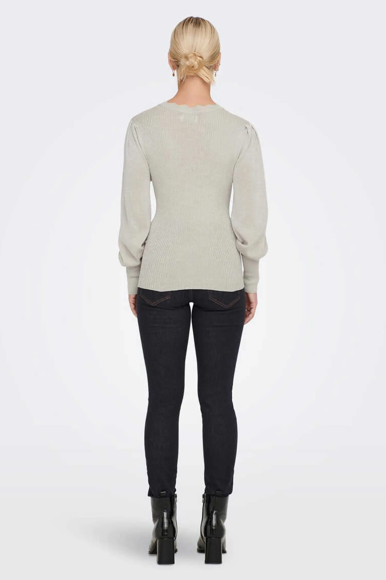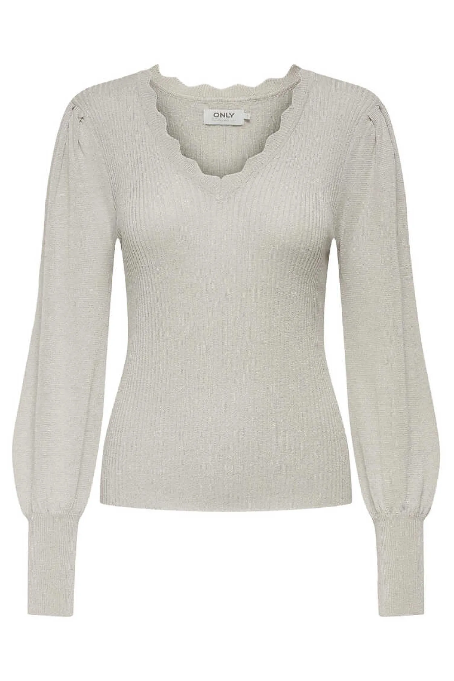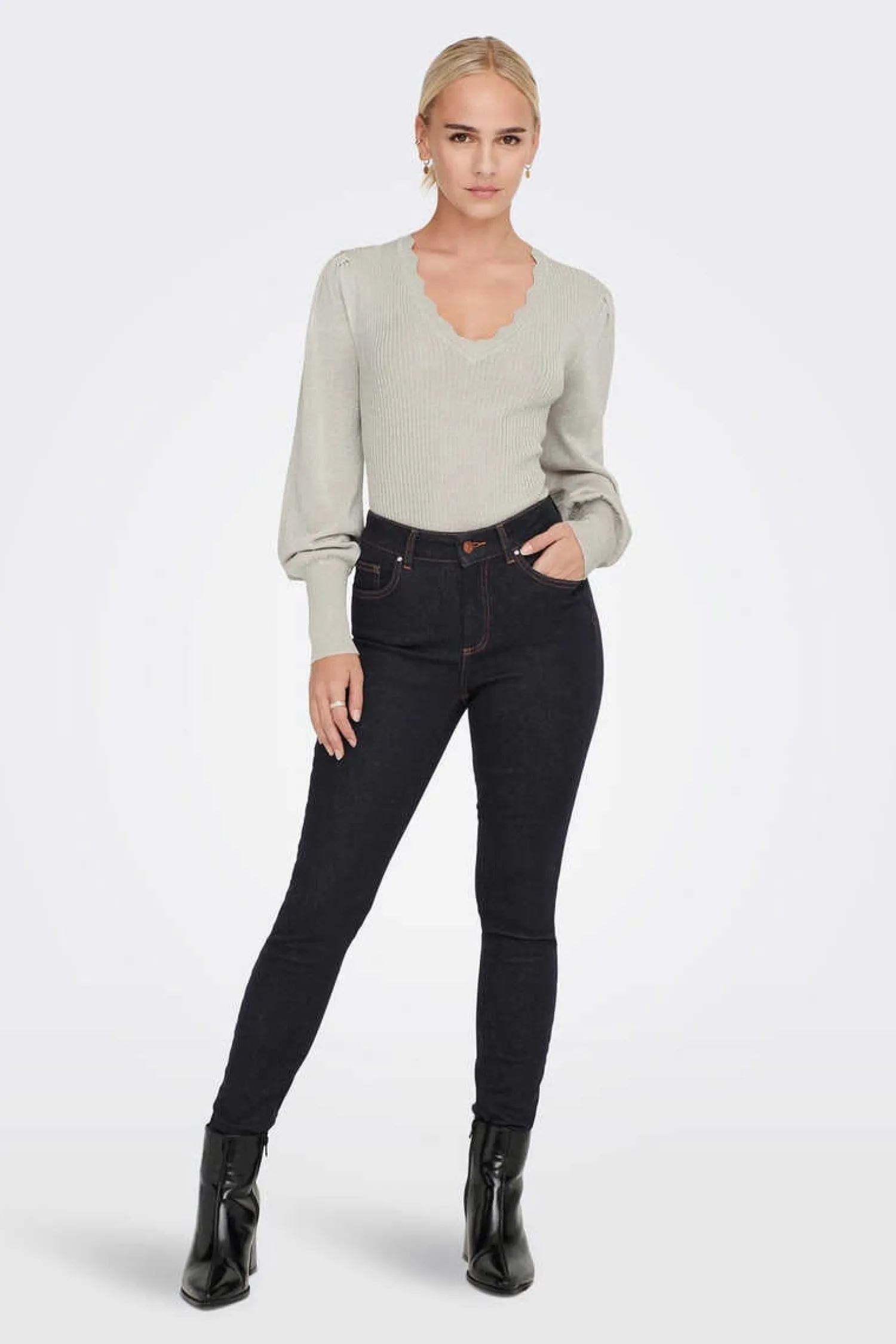 Camisola Em Bico Com Manga Comprida Ligeiramente Abalonada E Detalhes Debruados.
