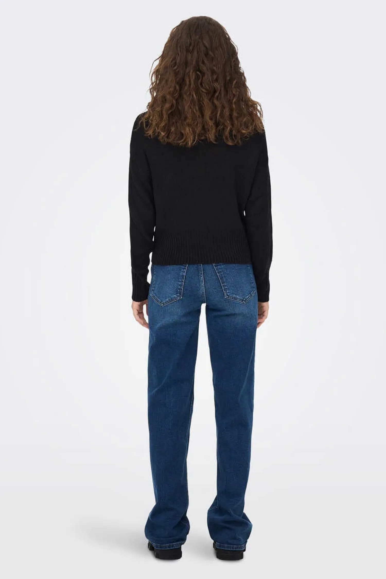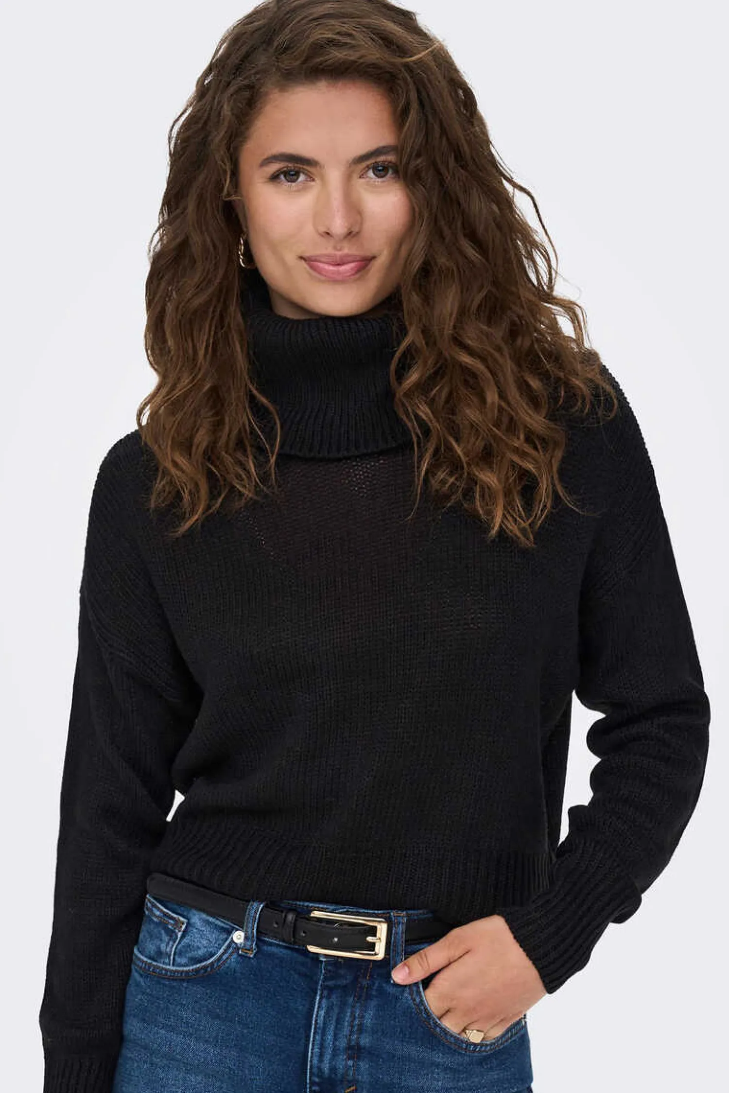 Camisola De Malha Com Gola Alta, Desenho De Uma So Cor, Manga Comprida E Extremidades Acanelados.