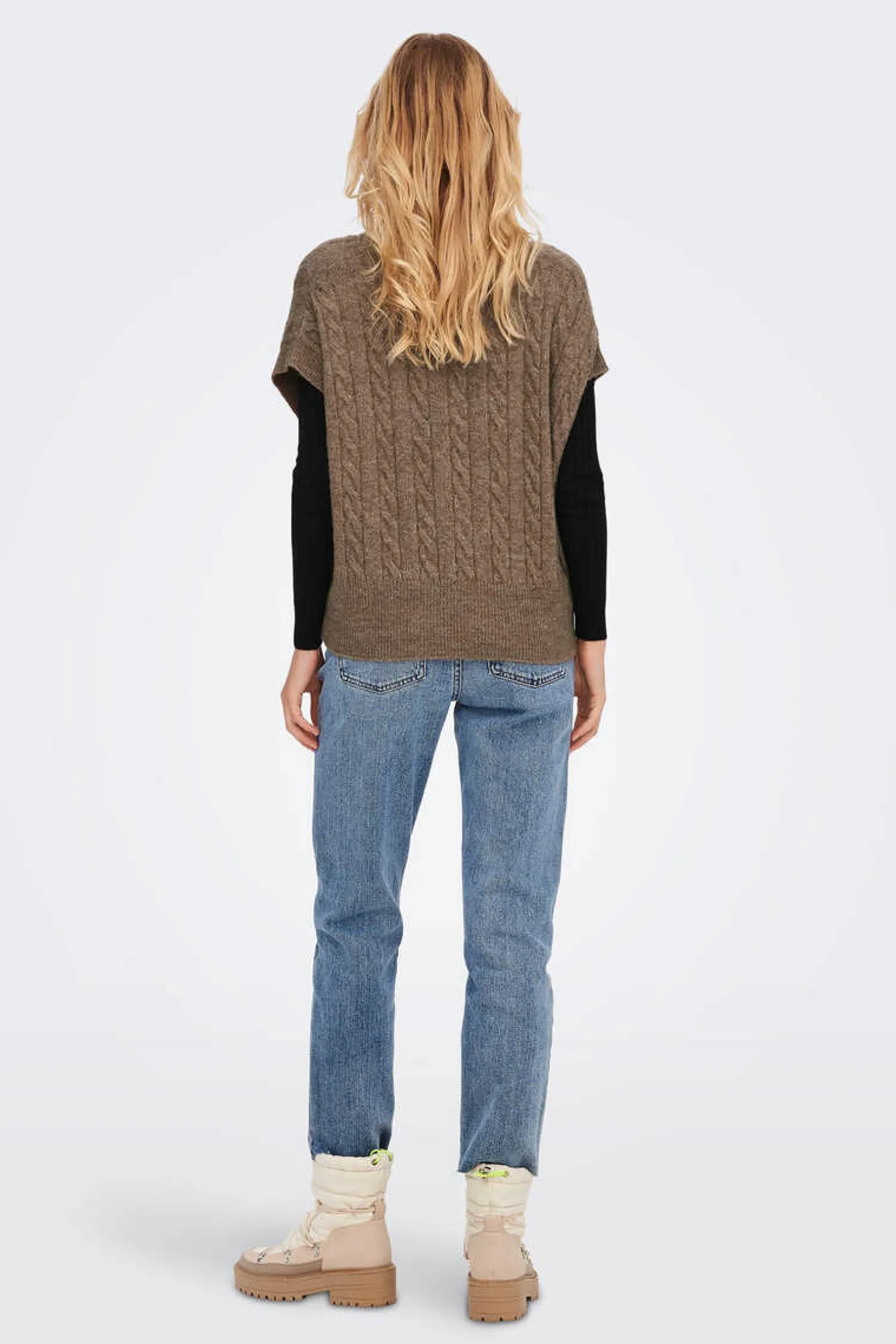 Colete De Malha Com Decote Em V E Mangas Curtas.