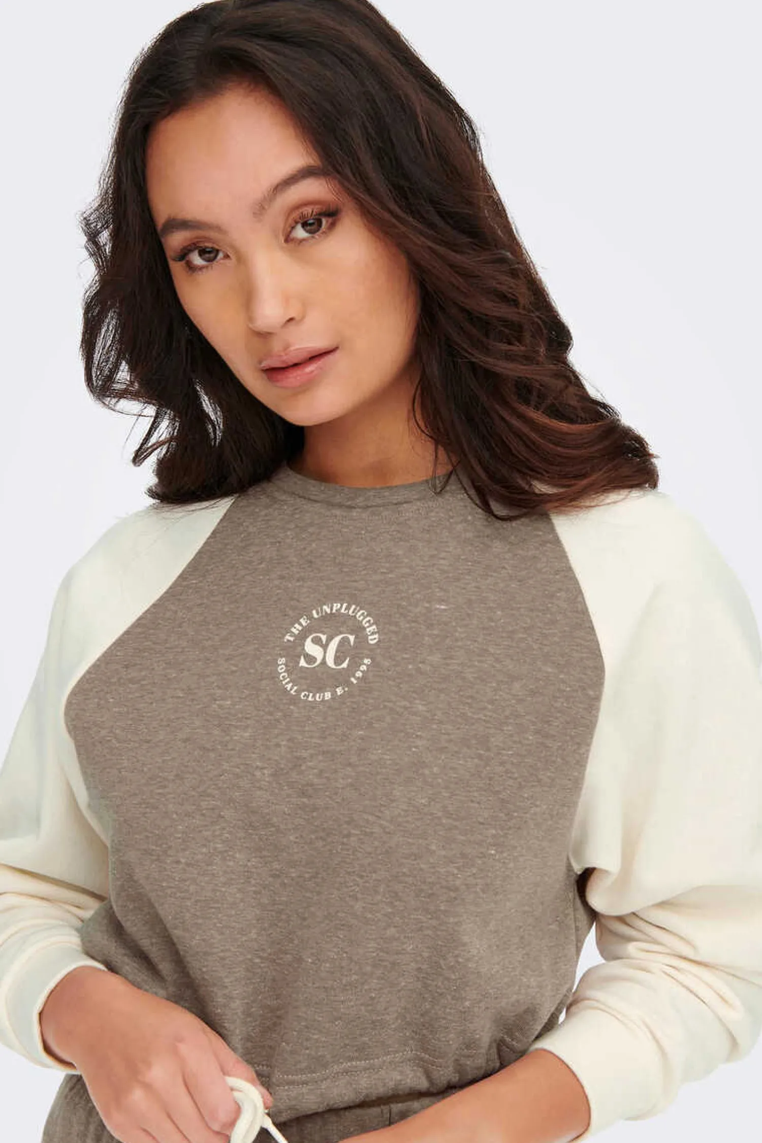 Sweatshirt Cropped De Manga Comprida, Gola Redonda, Cordao Ajustavel Na Cintura E Minilogo Na Parte Dianteira.
