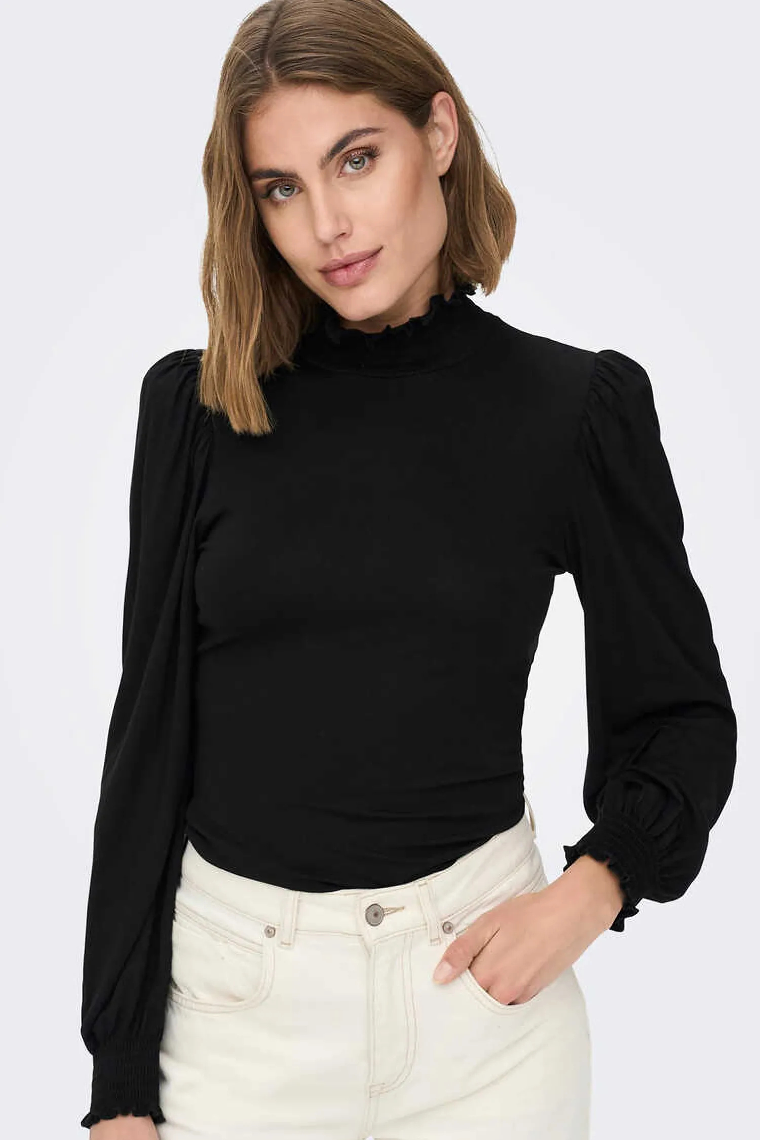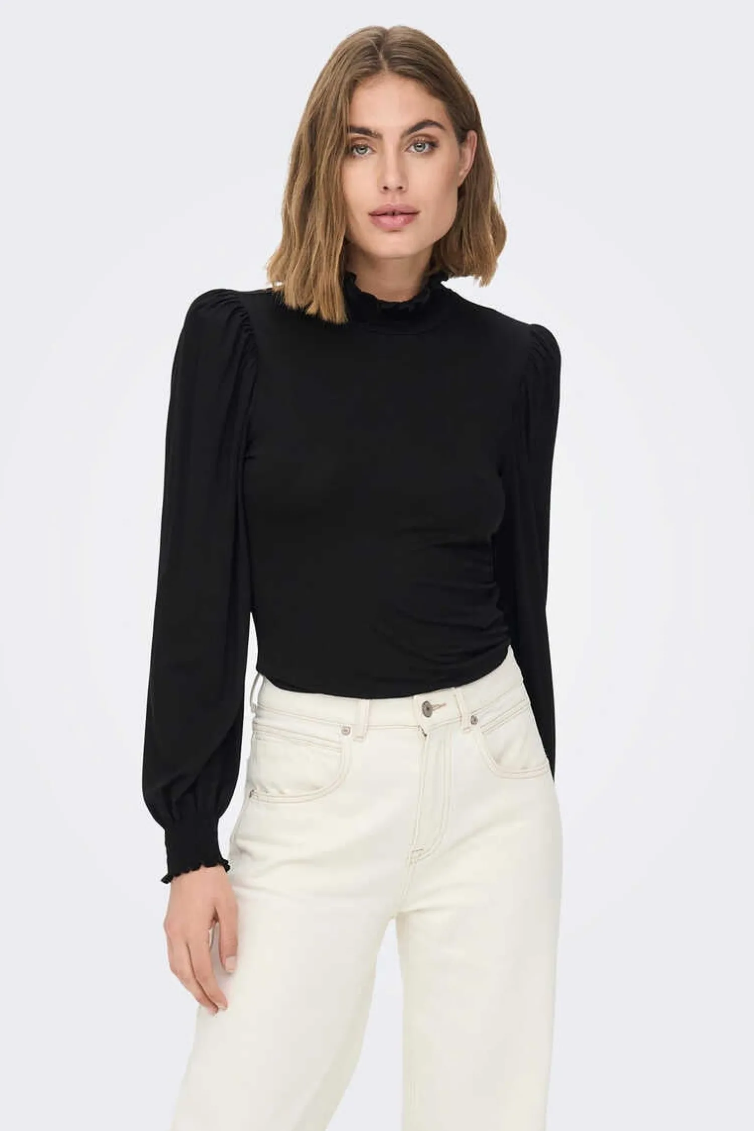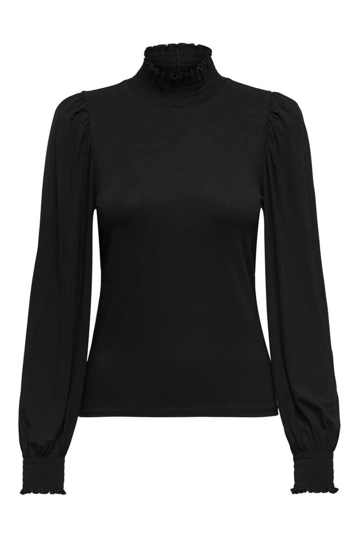 T-Shirt De Pescoco Alto Com Detalhe De Favo De Mel No Colarinho E Punhos.