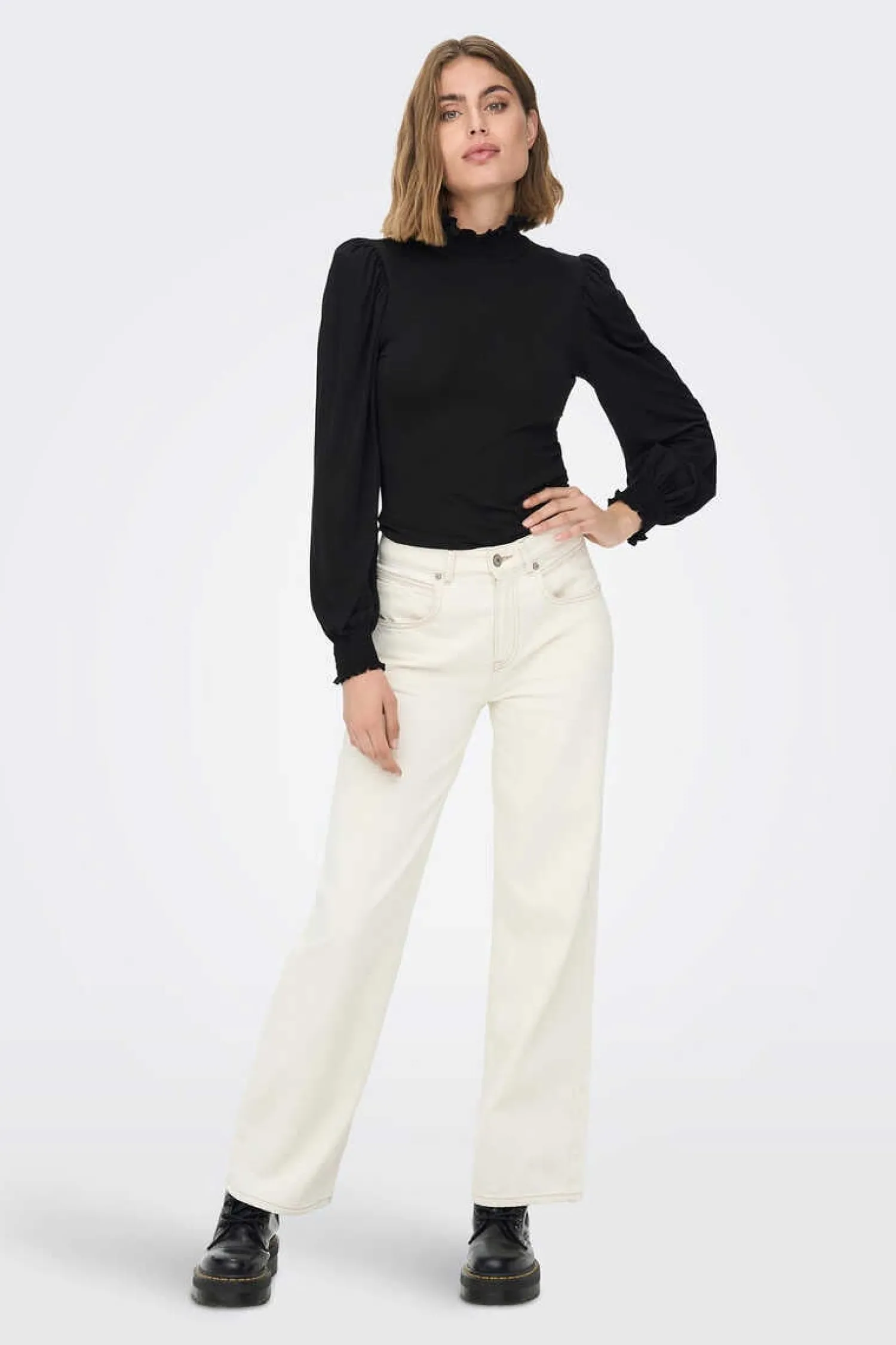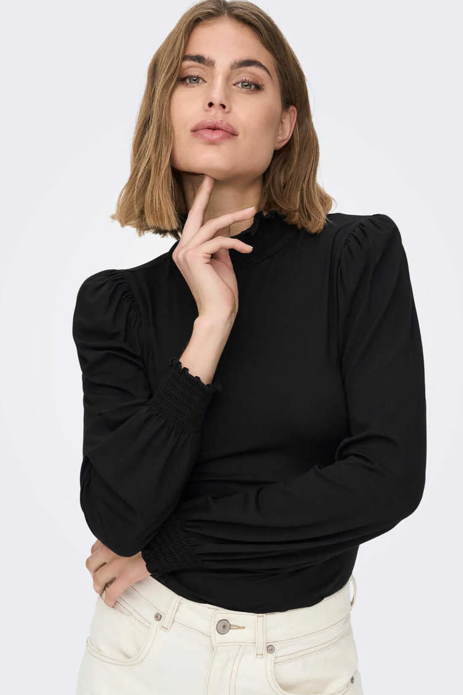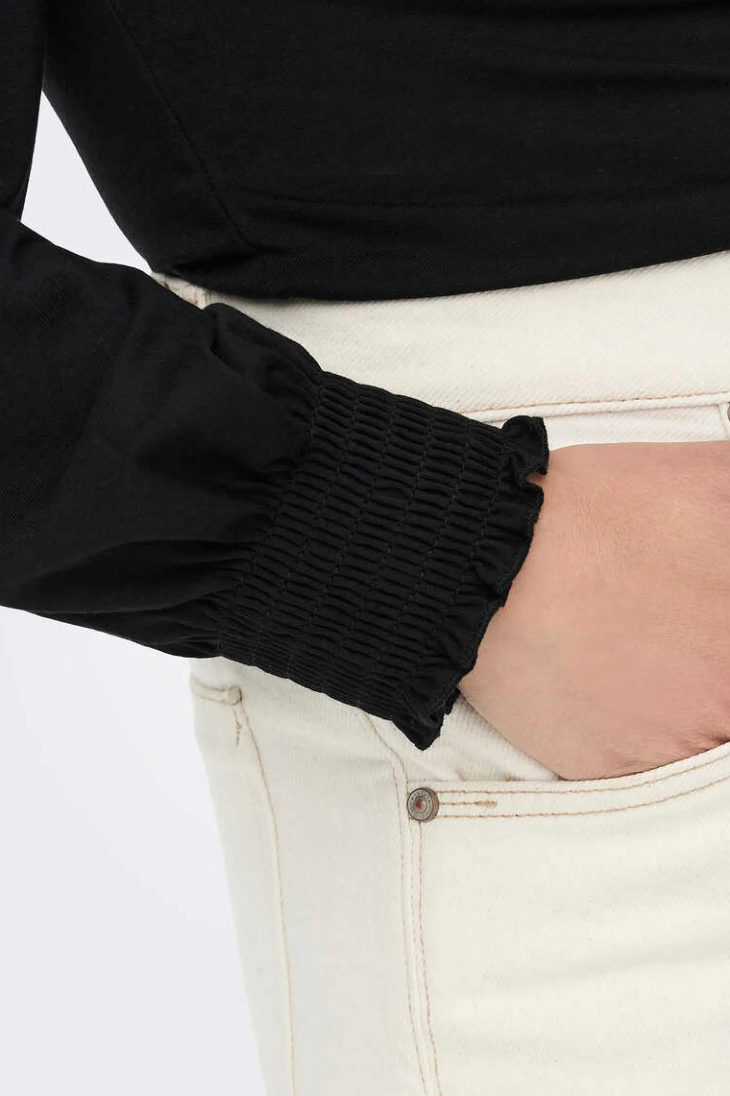 T-Shirt De Pescoco Alto Com Detalhe De Favo De Mel No Colarinho E Punhos.