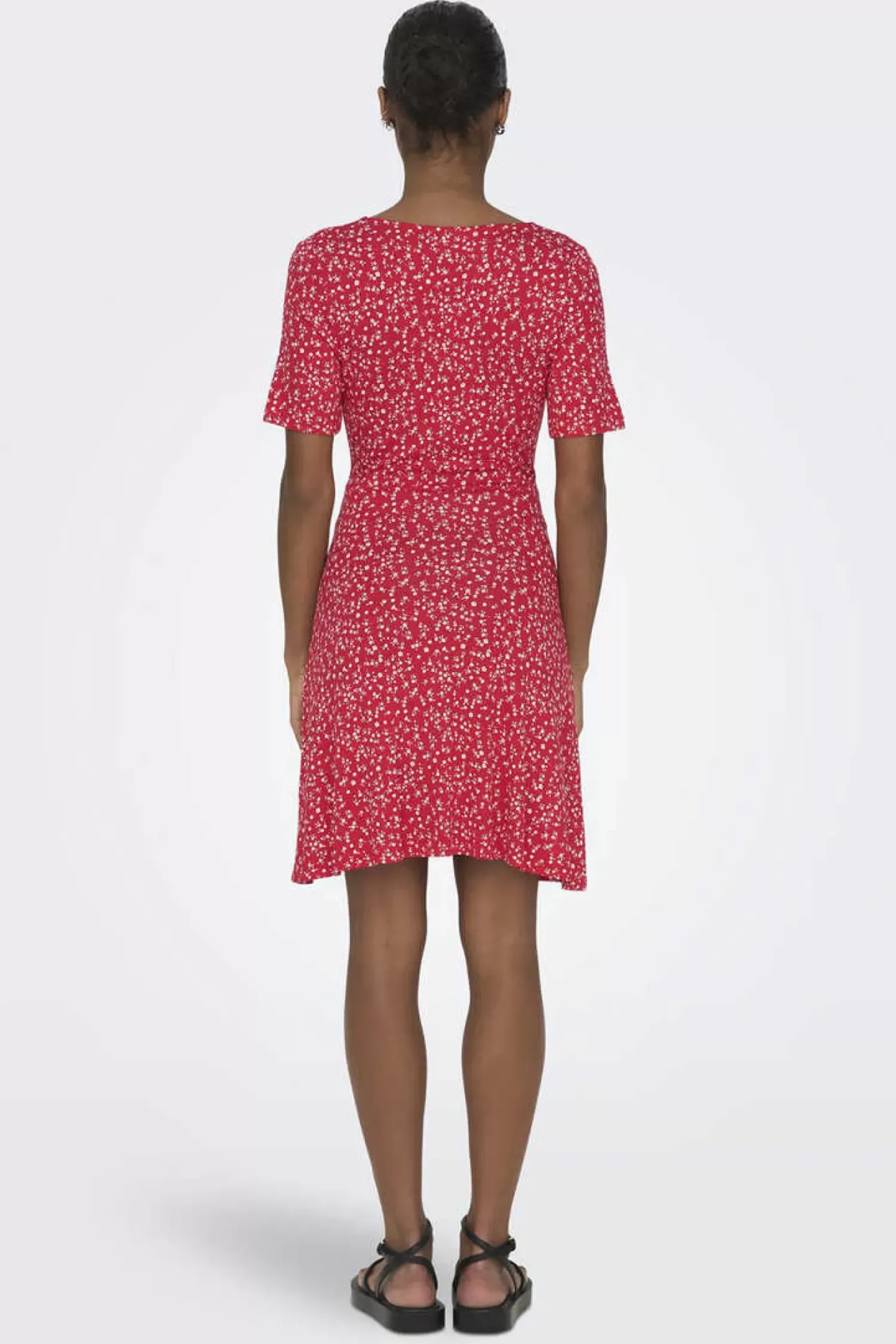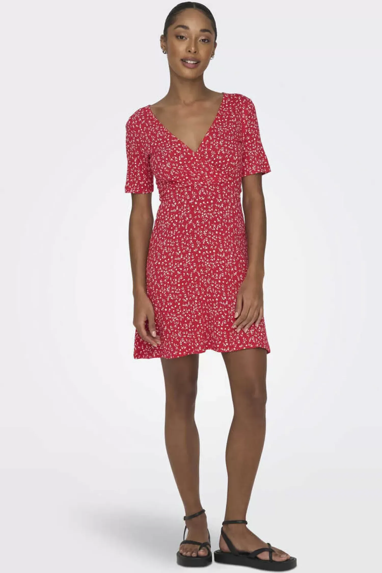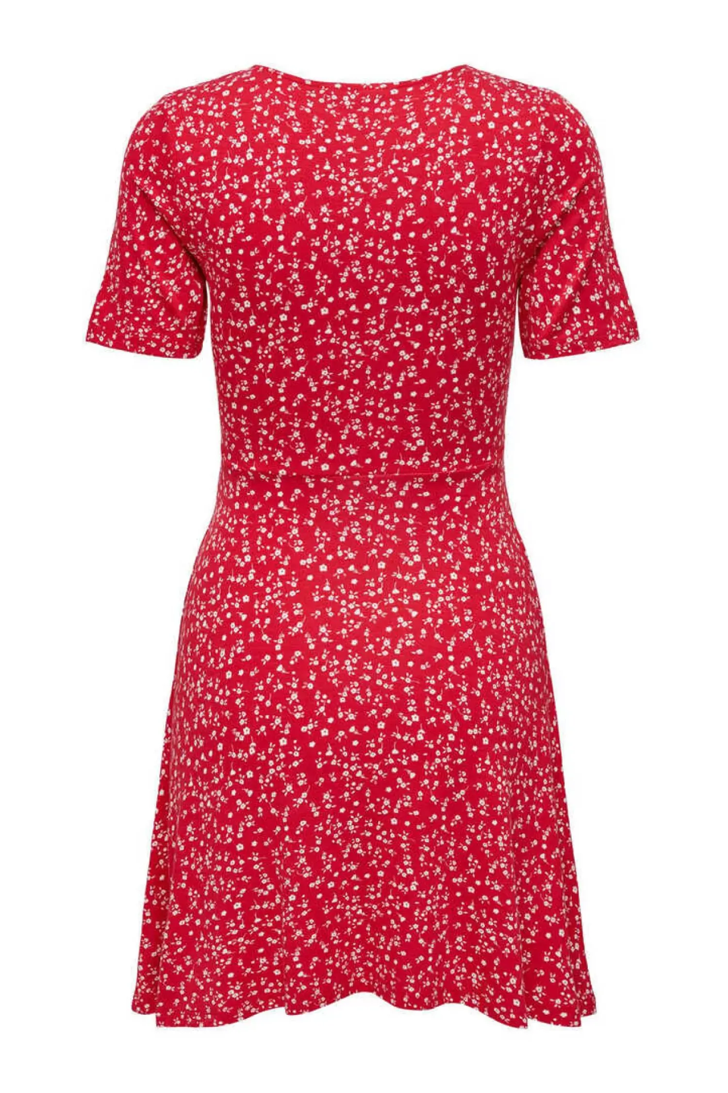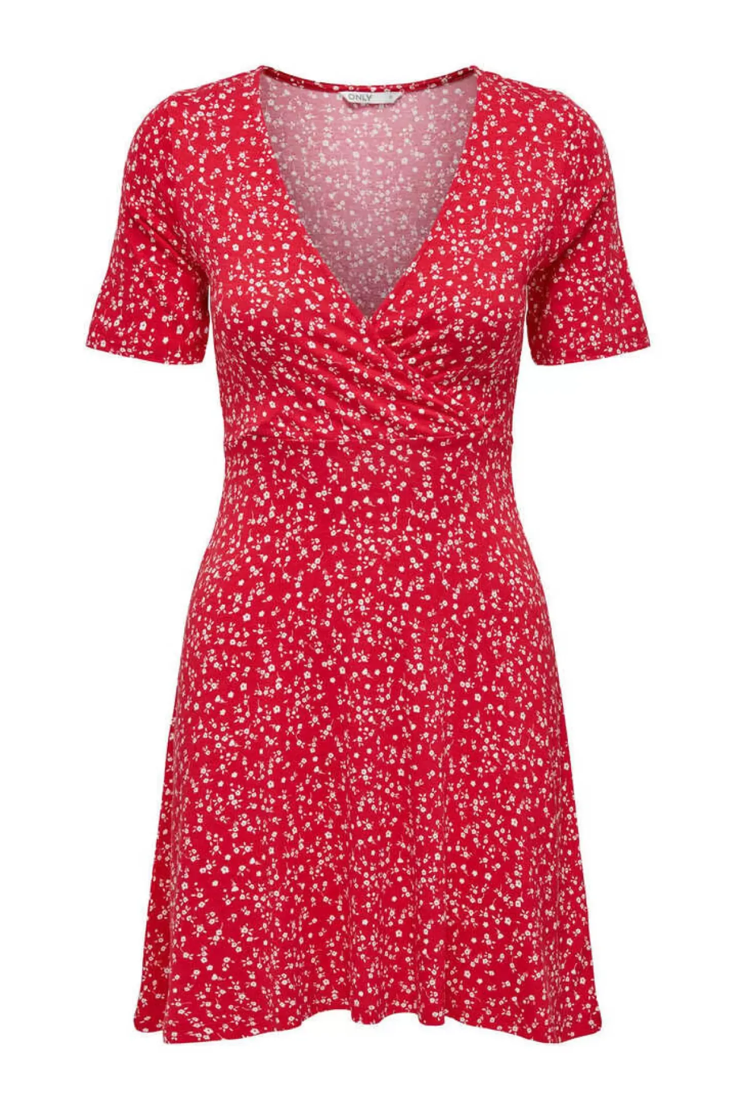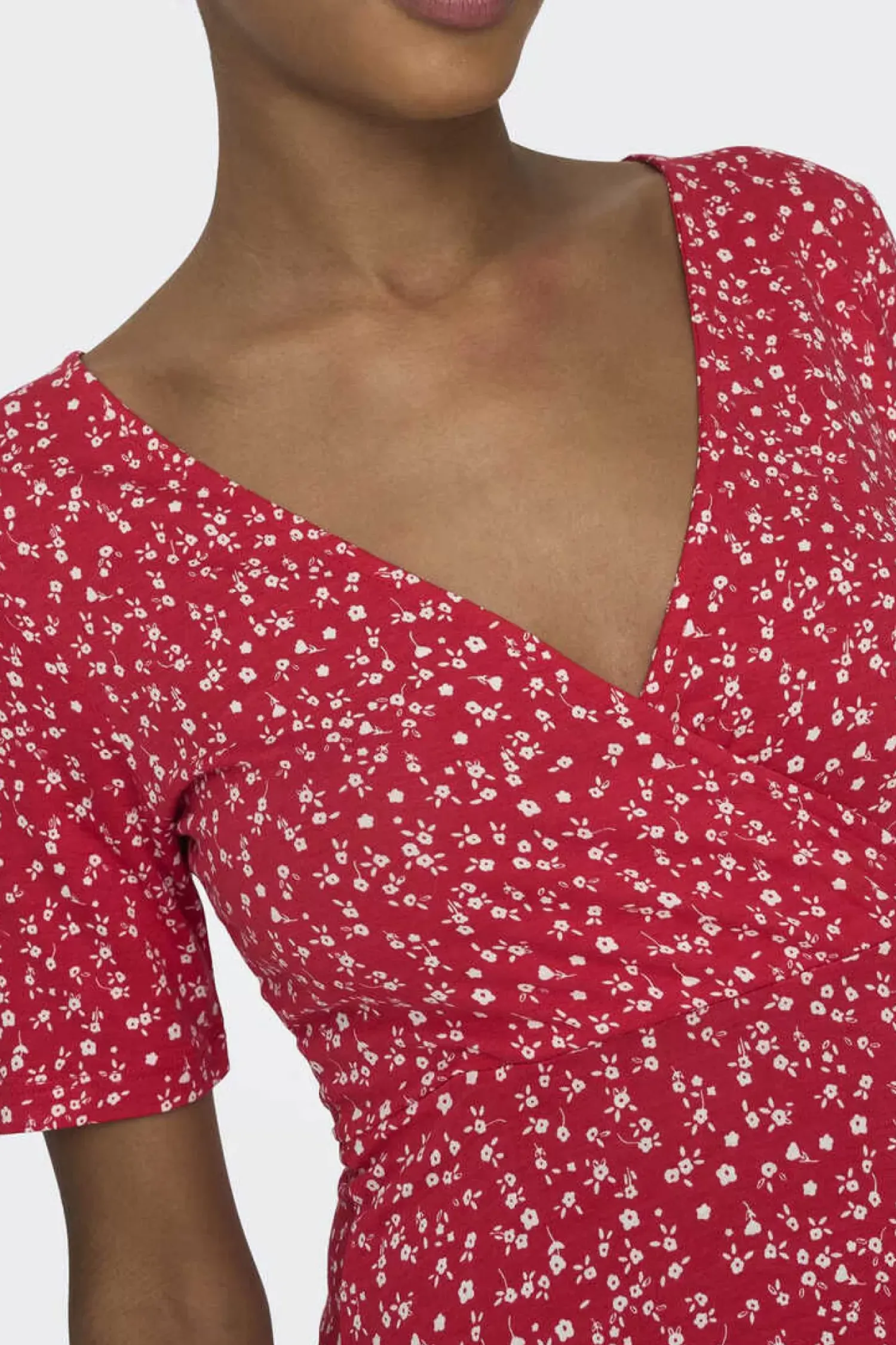 Vestido Curto De Manga Curta Com Decote Em Bico E Estampado De Flores.