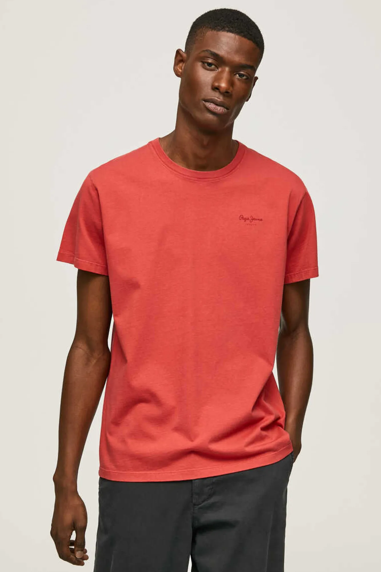 T-Shirt De Manga Curta De Gola Redonda Com Logo Pequeno. Efeito Lavado. Elaborado Em Algodao 100% Bci.