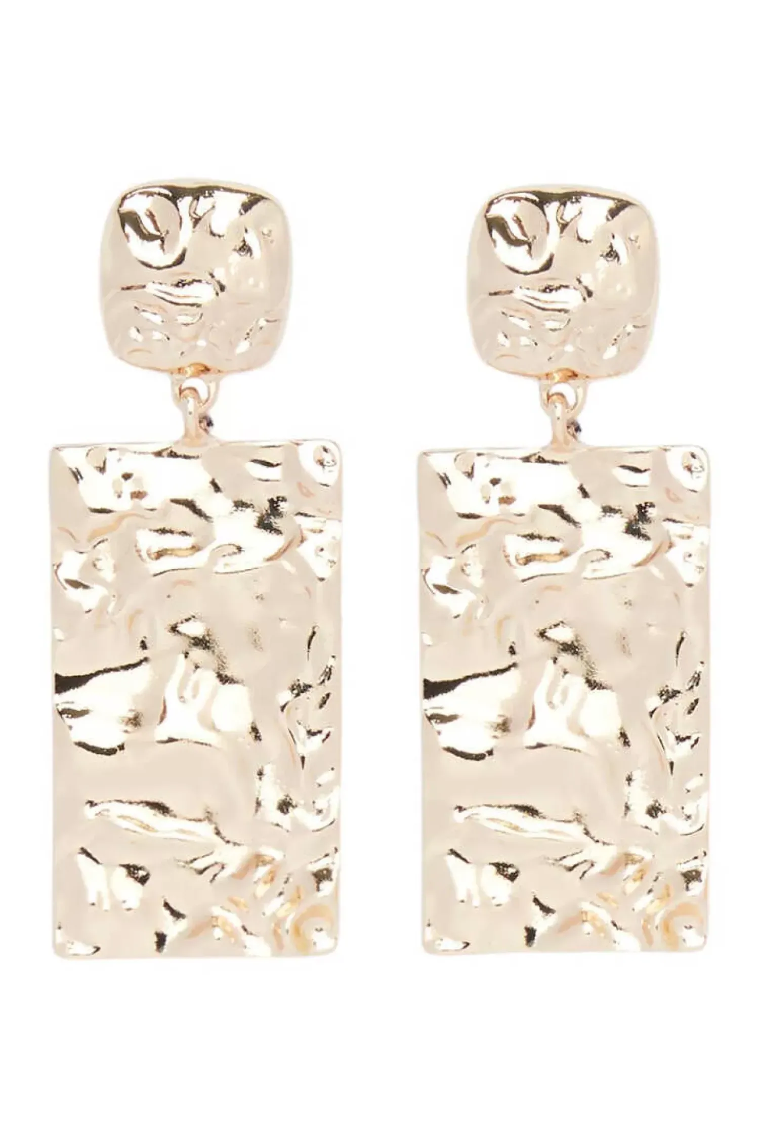 Brincos De Mulher De Cor Dourada Com Forma Retangular.