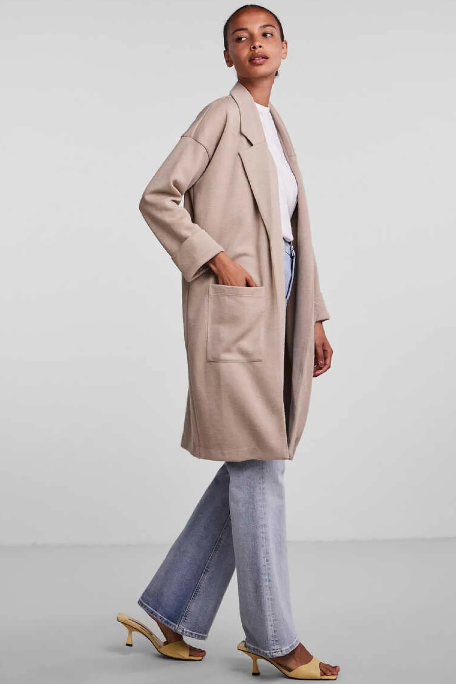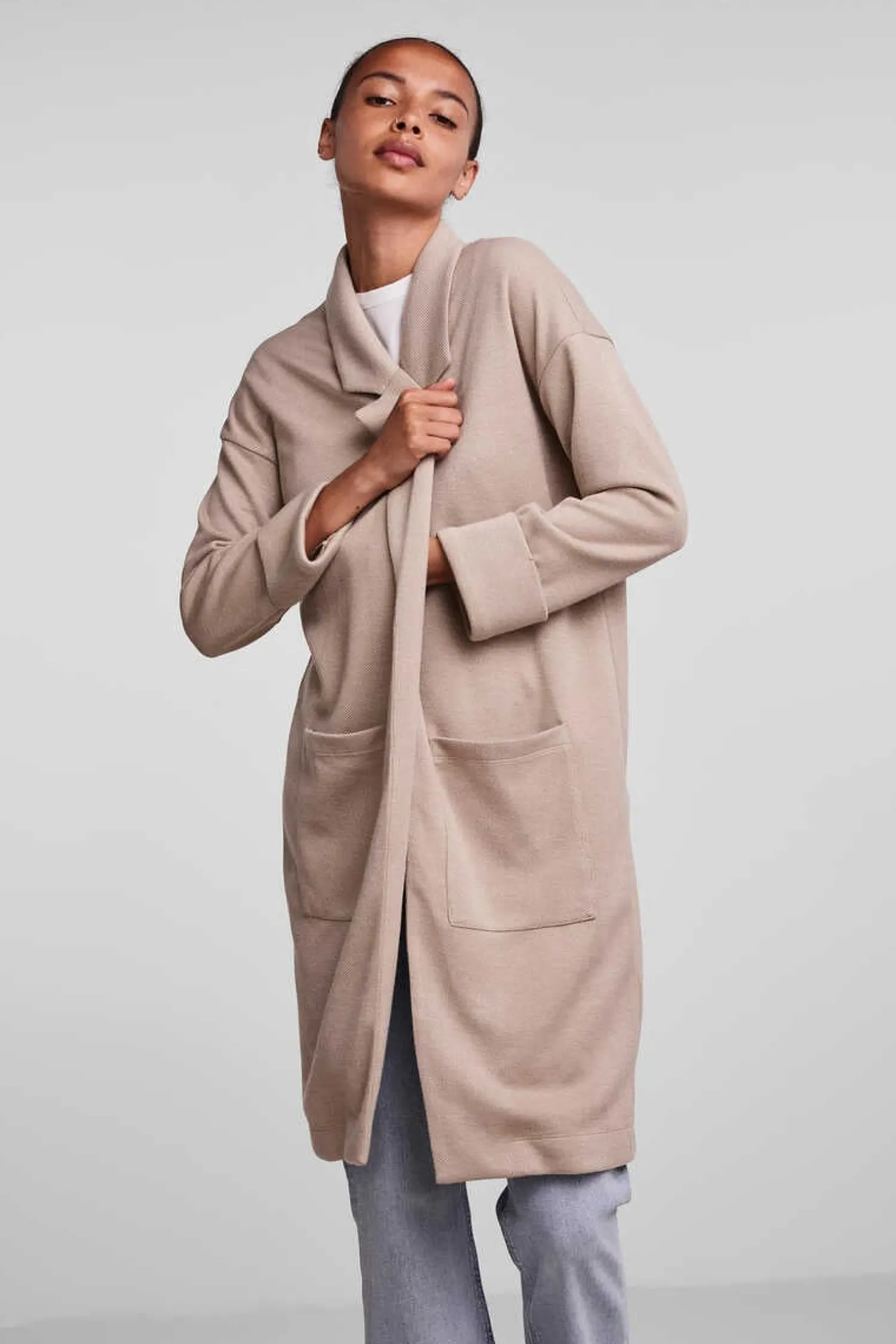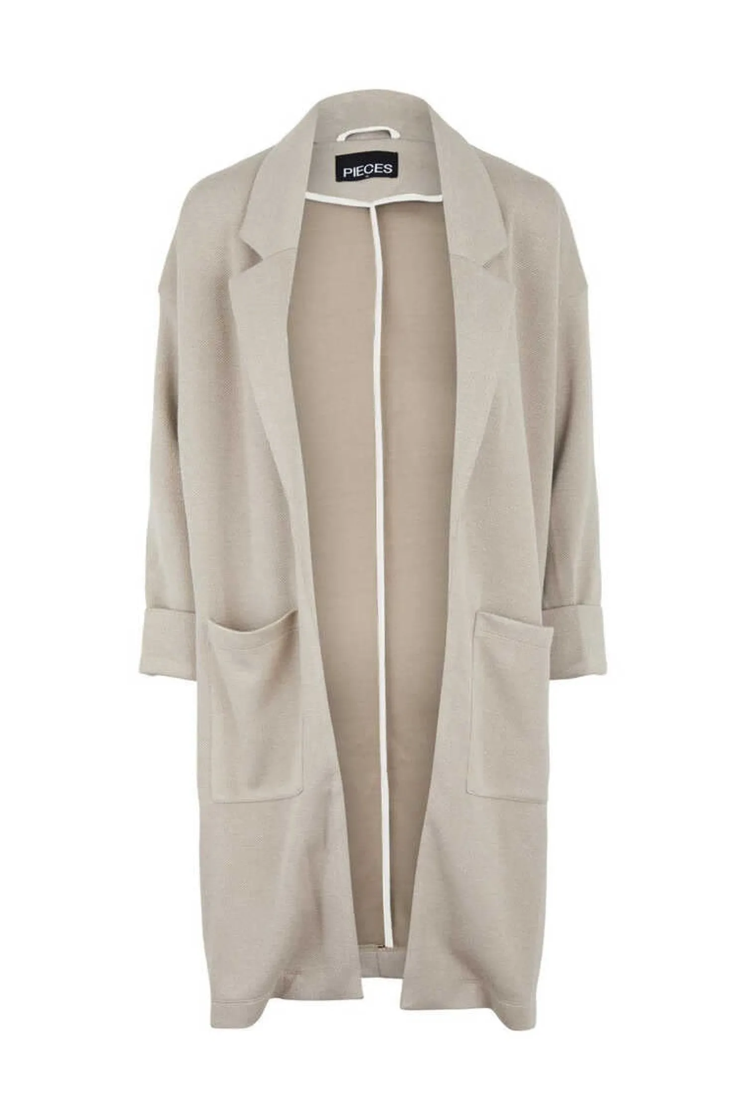 Casaco Comprido Sem Fecho. De Manga Comprida E Decote Com Lapelas. Dois Bolsos A Frente E Detalhe De Punhos Com Dobra.