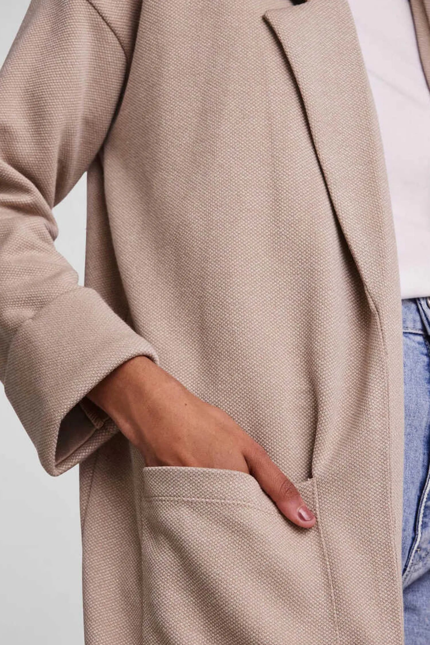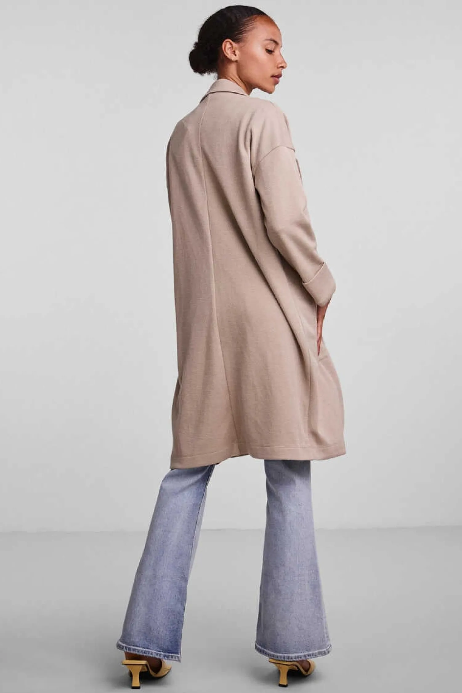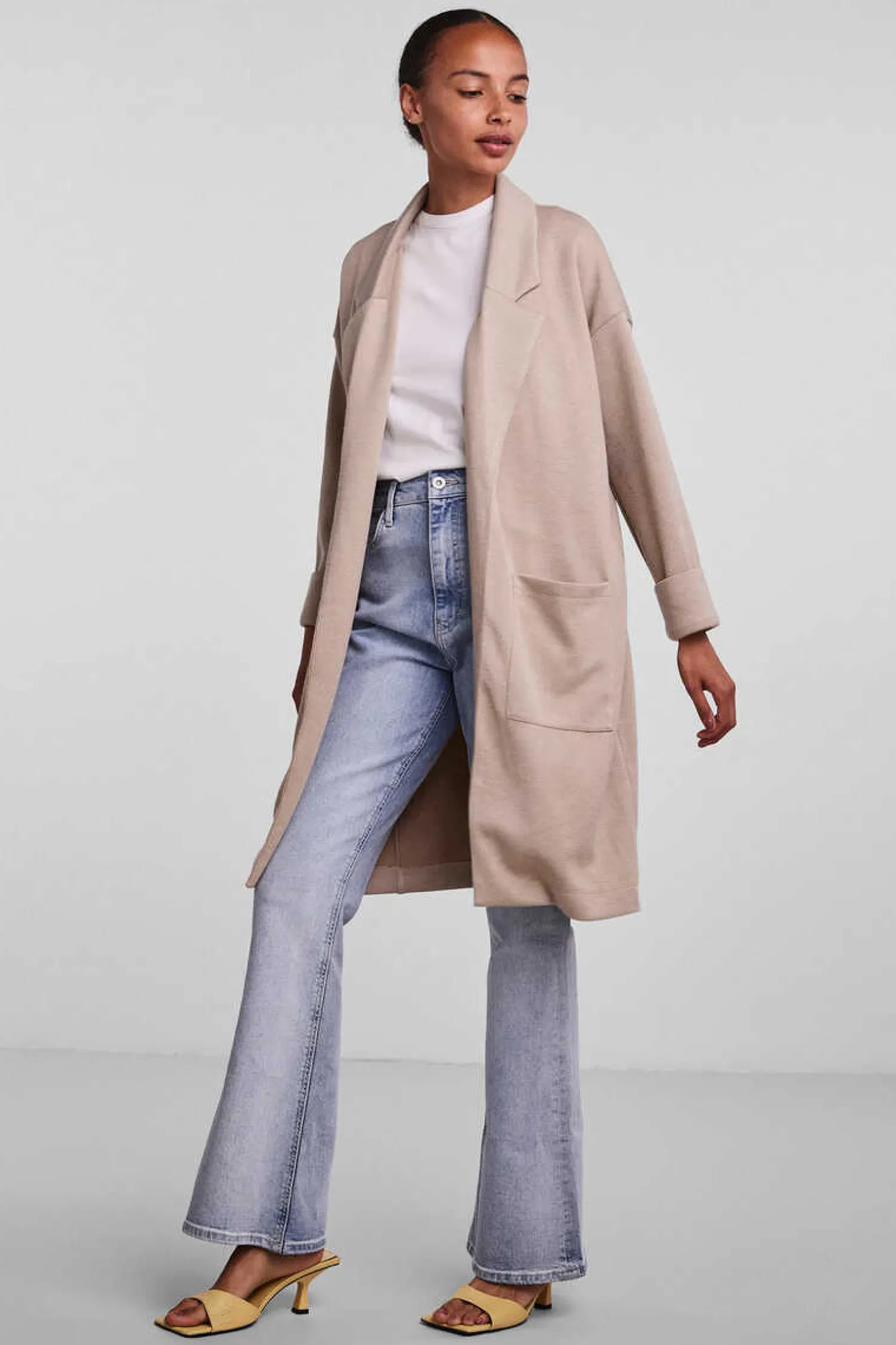 Casaco Comprido Sem Fecho. De Manga Comprida E Decote Com Lapelas. Dois Bolsos A Frente E Detalhe De Punhos Com Dobra.