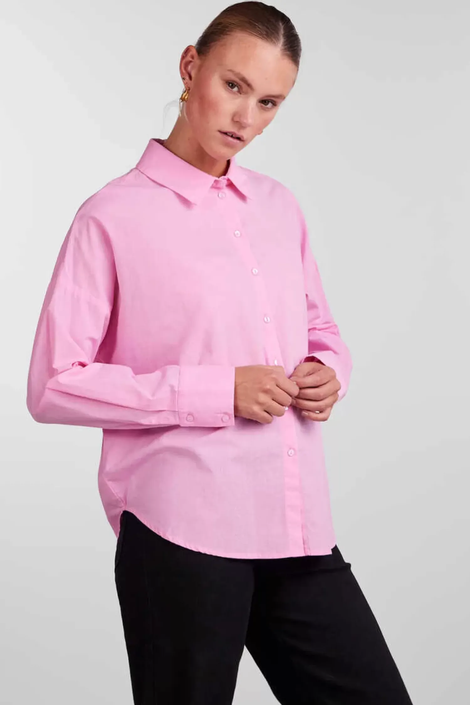 Camisa Basica De Algodao Com Fecho Frontal Abotoado. Detalhe Punhos Com Botao.