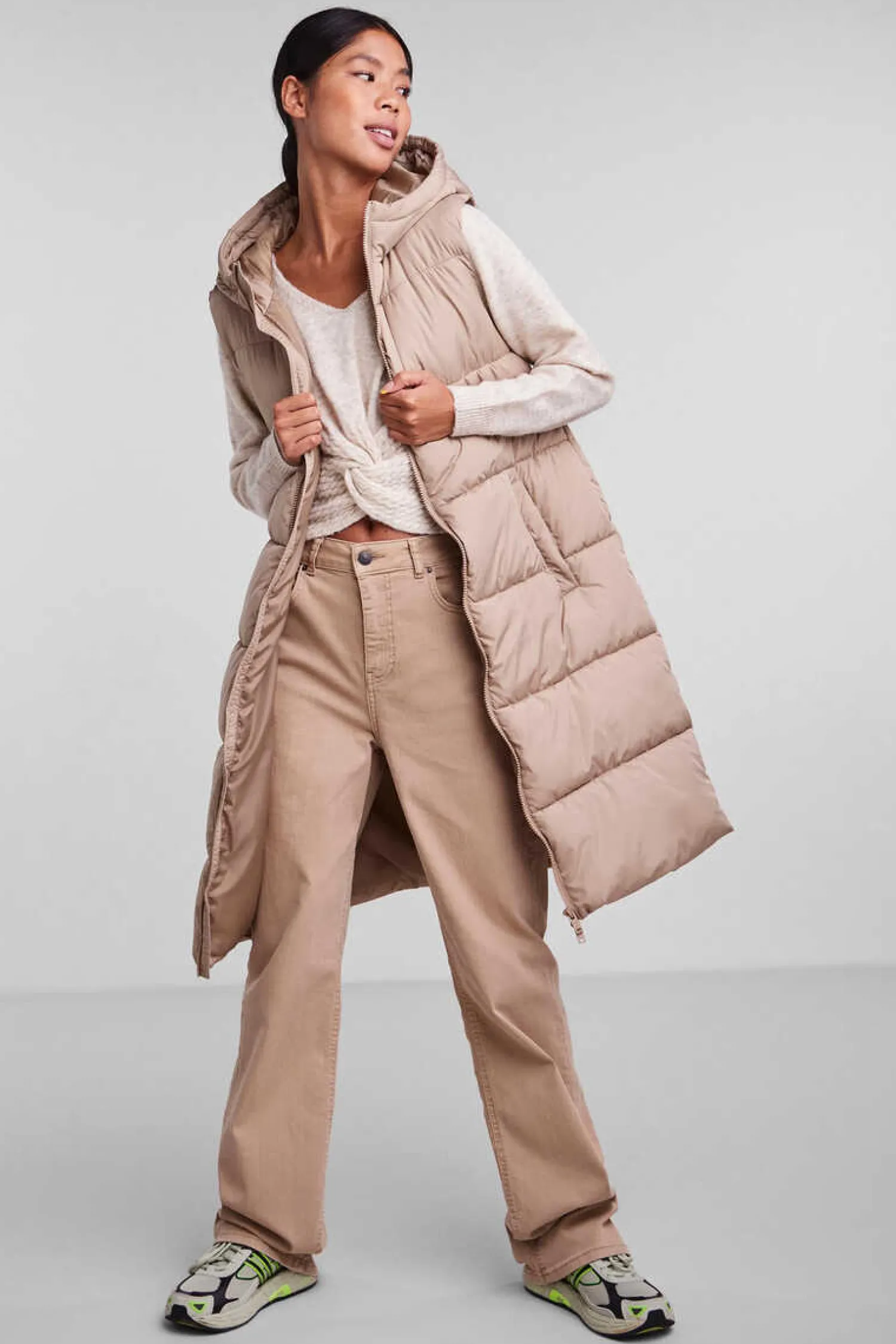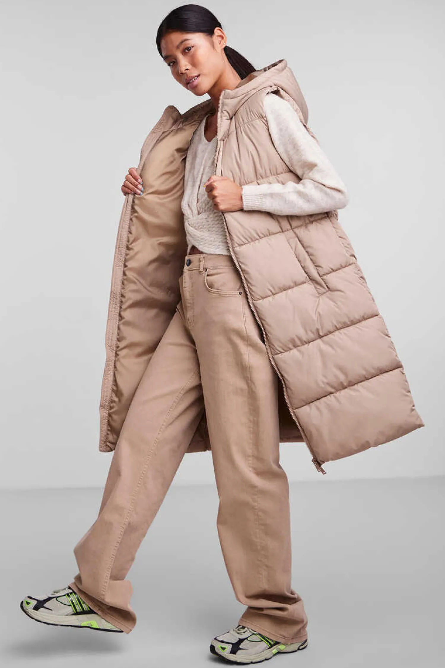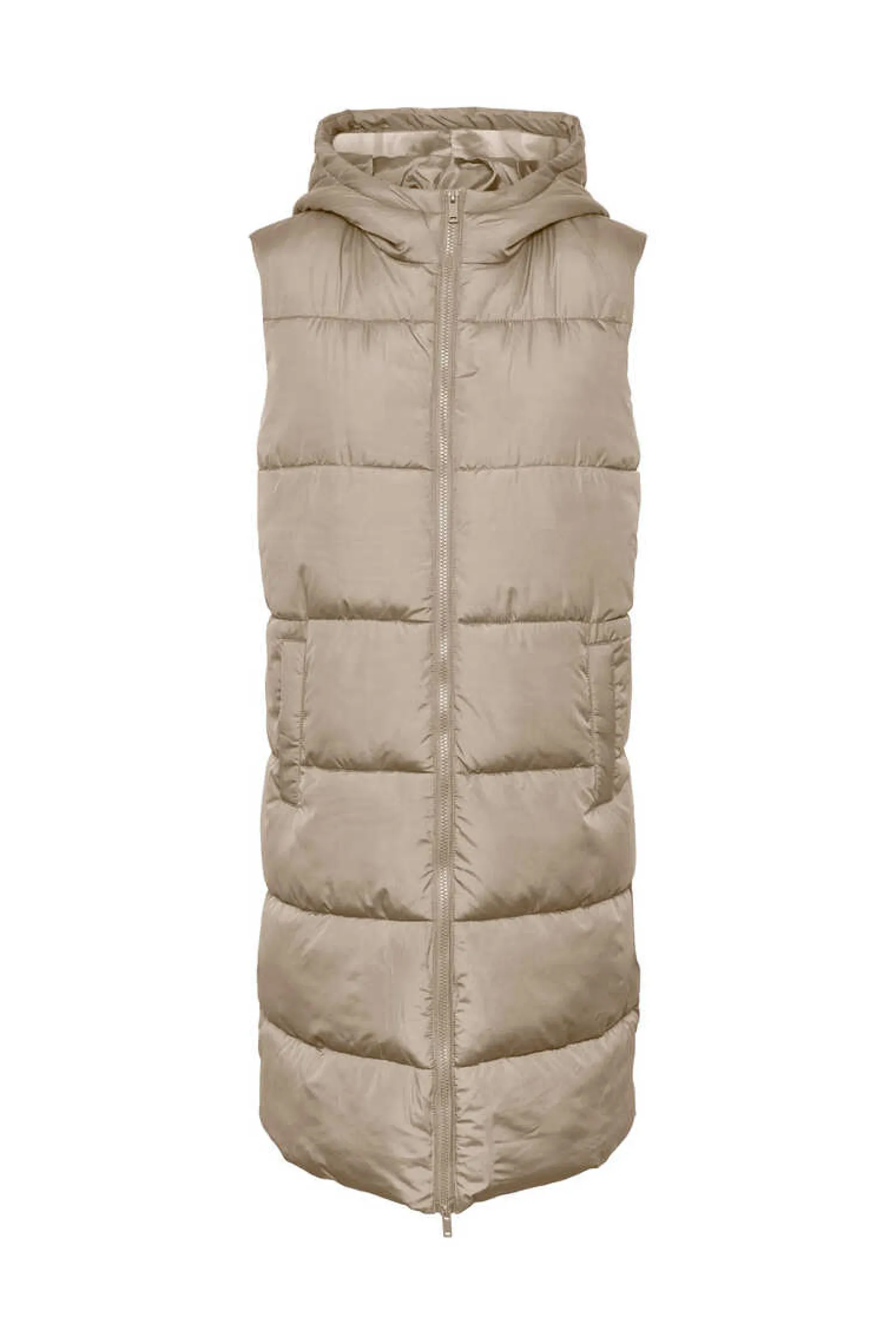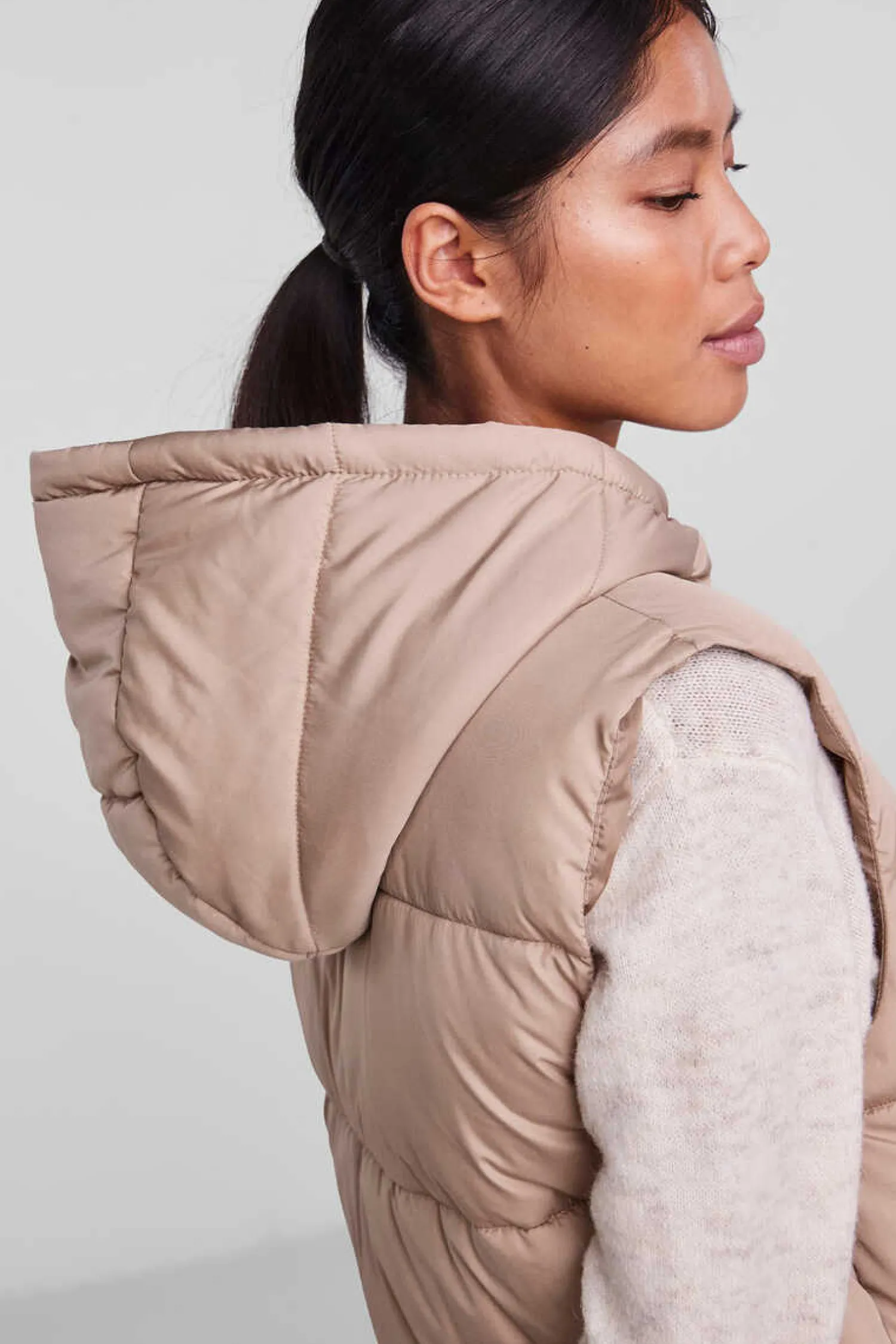 Colete Acolchoado De Gola Redonda, Com Bolsos Dianteiros E Capuz. Fecho-Eclair.