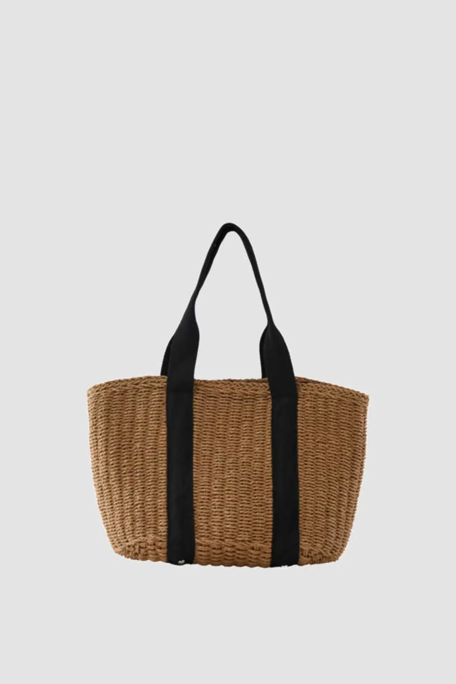 Mala De Palha 23 X 40 X 30, Com Asas De Tira Preta.
