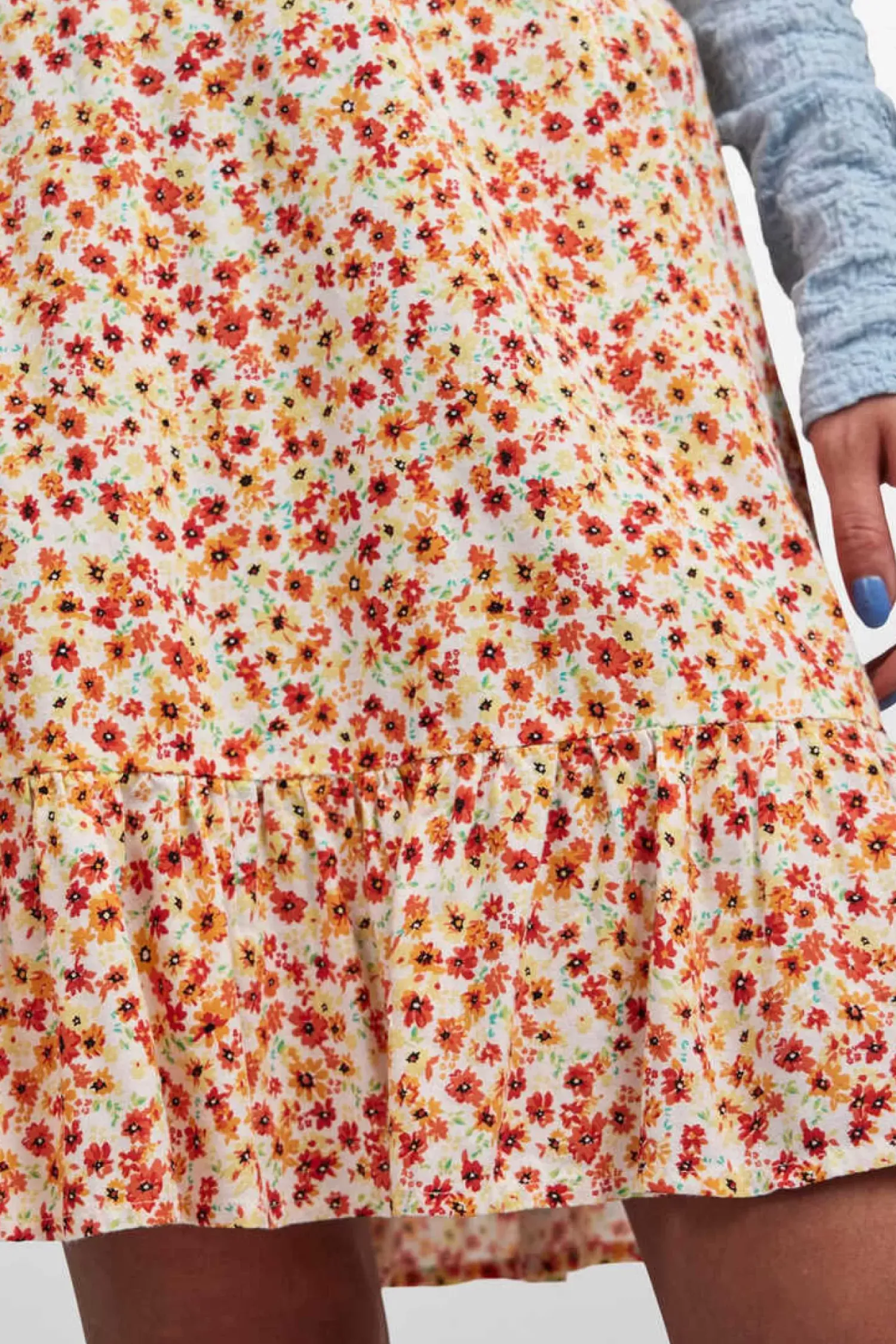 Saia Curta De Mulher Com Detalhe De Cintura Elastica. Detalhe Em Forma De Folho.