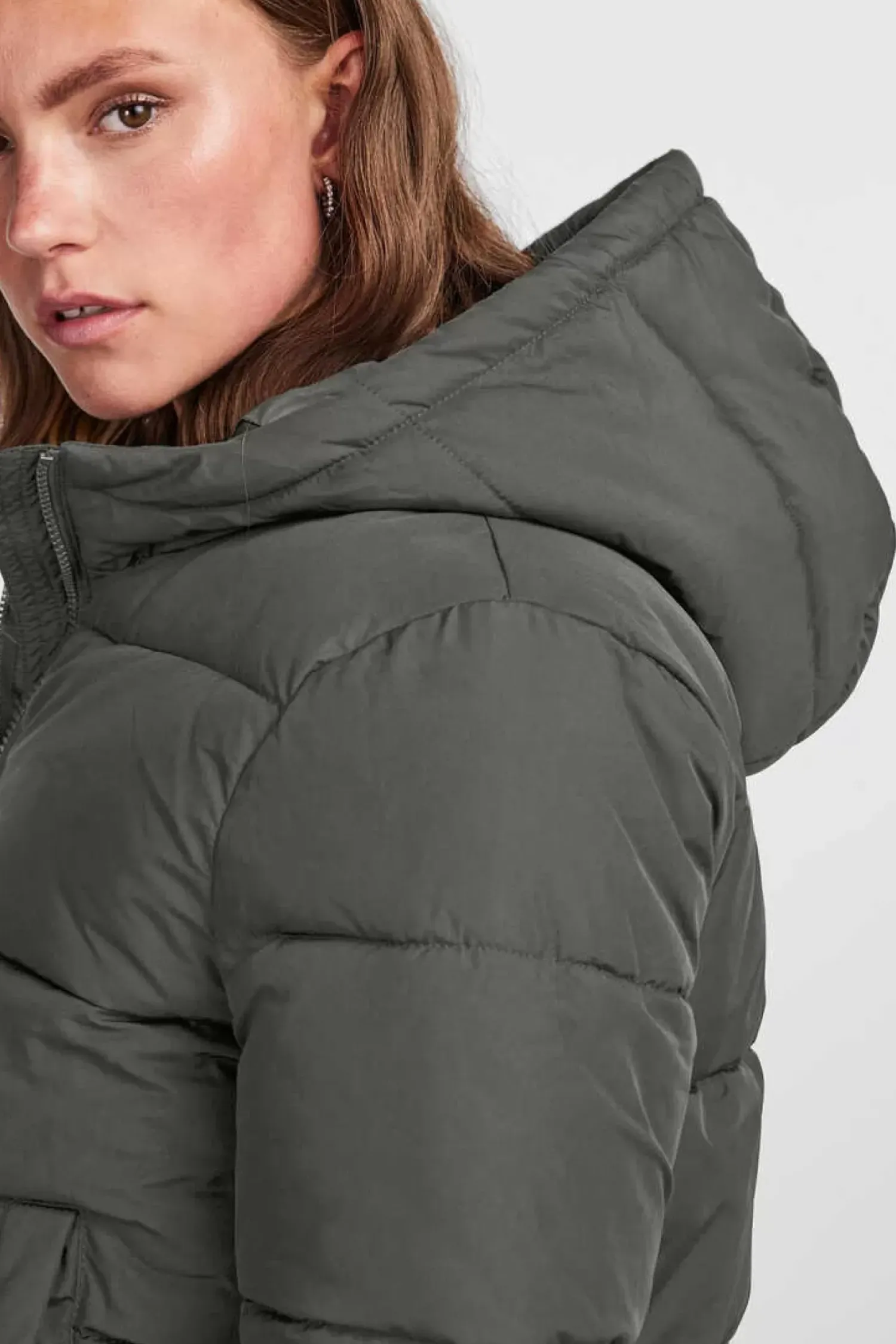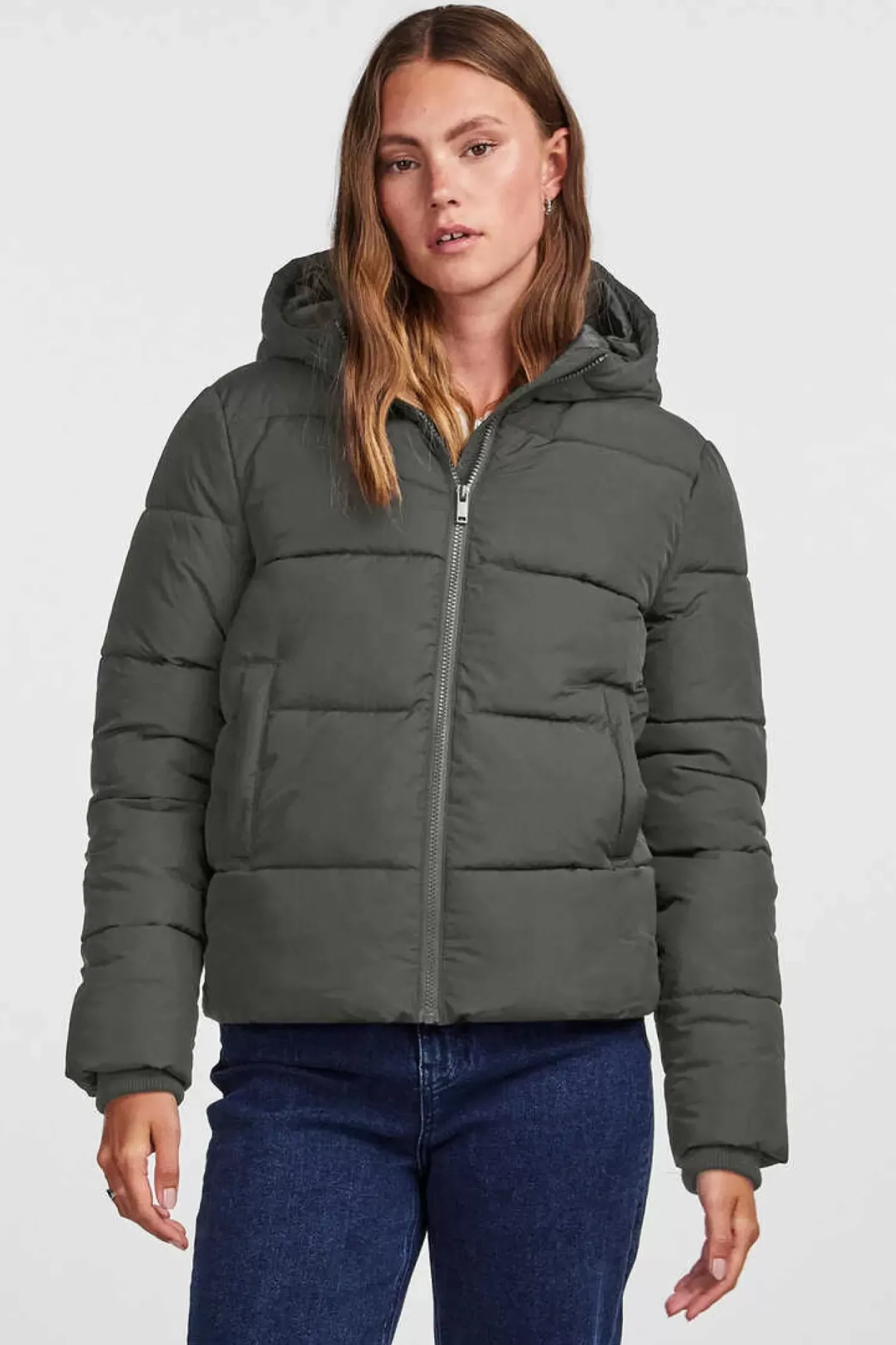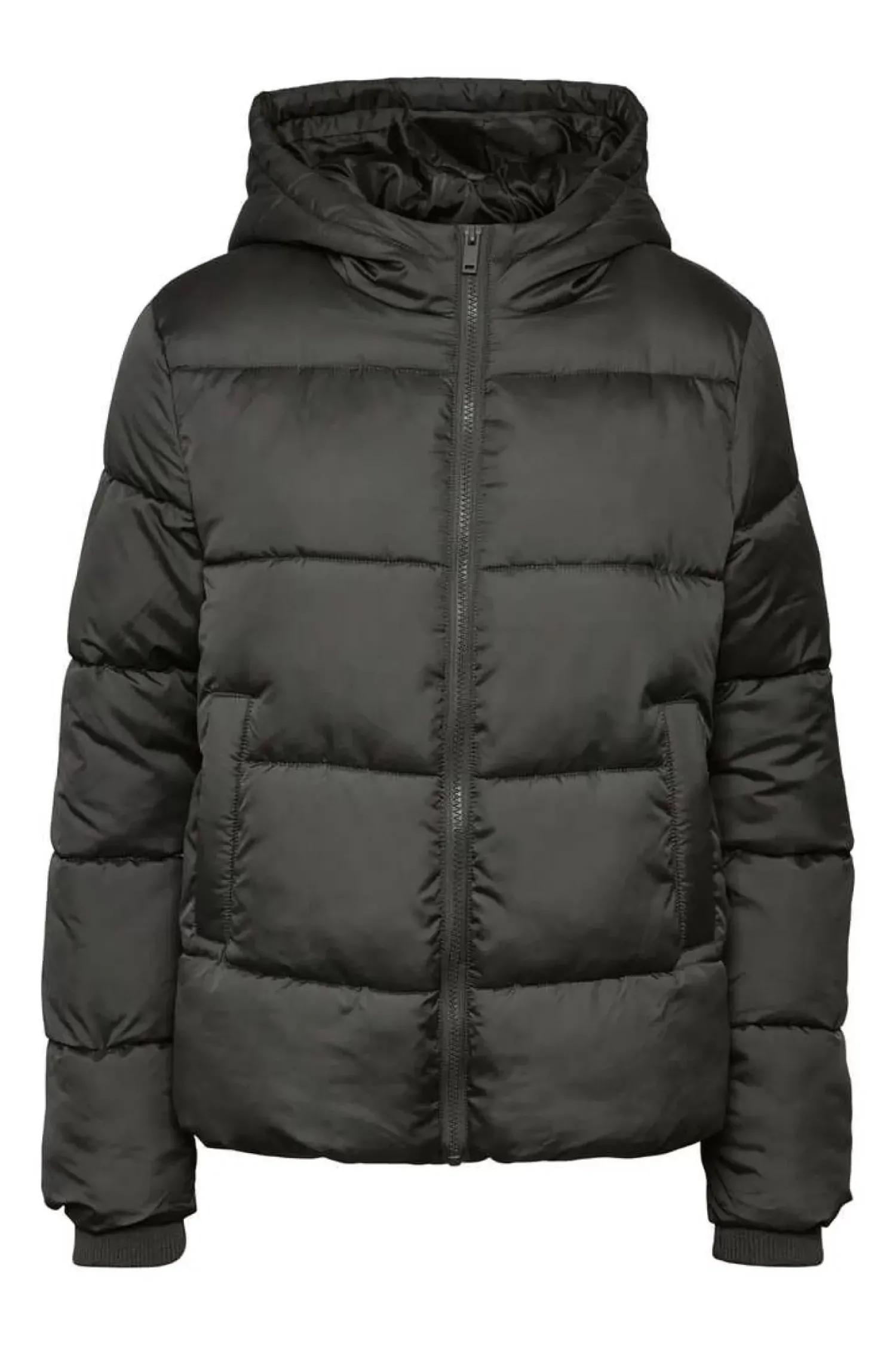 Sobretudo Comprido Acolchoado, Bolsos Frontais E Fecho Com Fecho-Eclair.