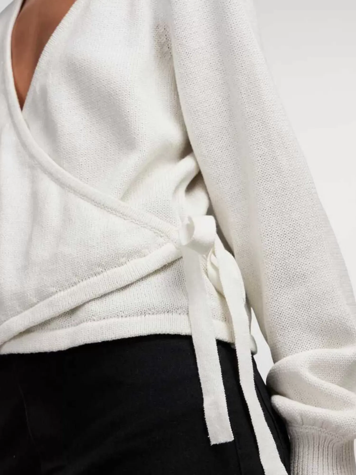 Cardigan De Malha, De Manga Comprida E Fecho Cruzado Com Laco. Acabamentos Em Rib.