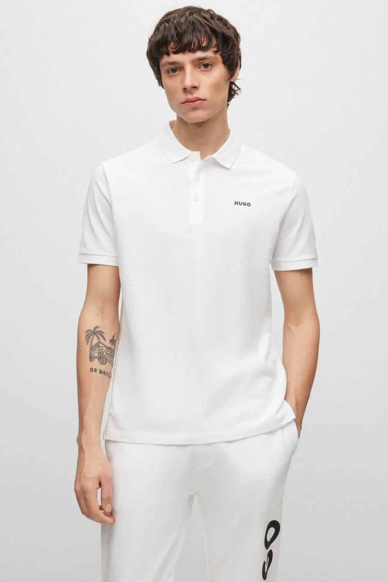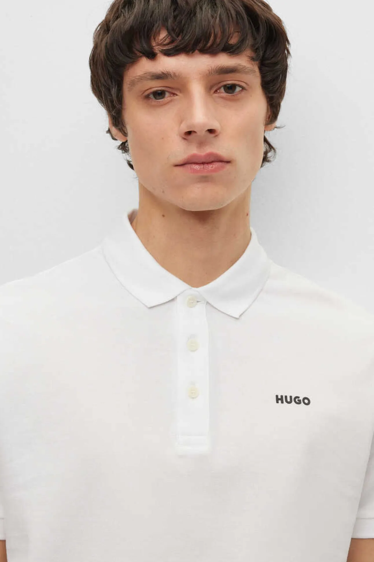 Polo De Manga Curta Com Fecho De Tres Botoes, Gola E Punhos De Malha Rasa. Logo Hugo Estampado No Peito. Algodao Feito Em Africa