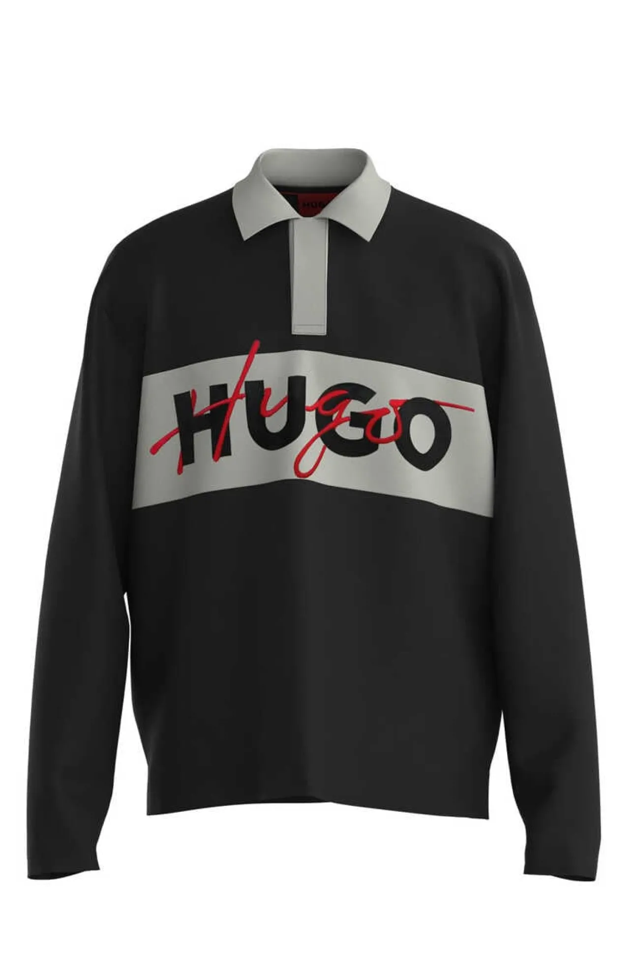 Polo De Manga Comprida Com Logo Hugo. Fecho De Botao Oculto, Faixa De Cor Em Contraste E Detalhe De Gola.