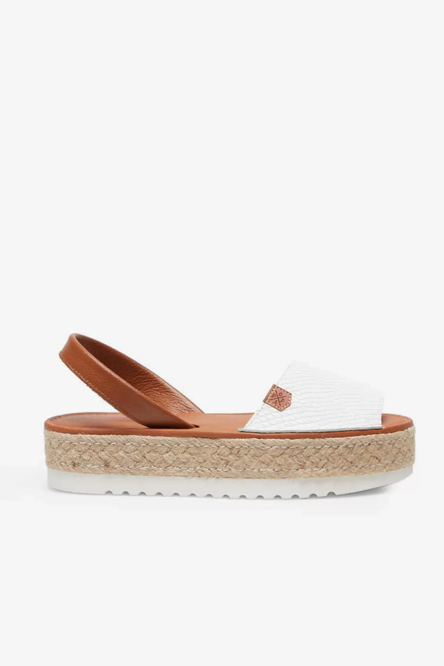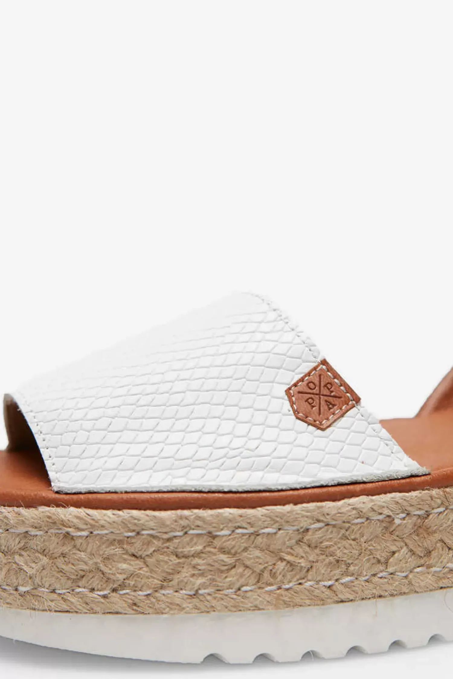 O Modelo Iconico De Popa Volta Por Mais Uma Estacao. Em Cor Branca E Couro E Com A Sua Plataforma Tao Carateristica Que Combina Juta Com Detalhes Brancos.