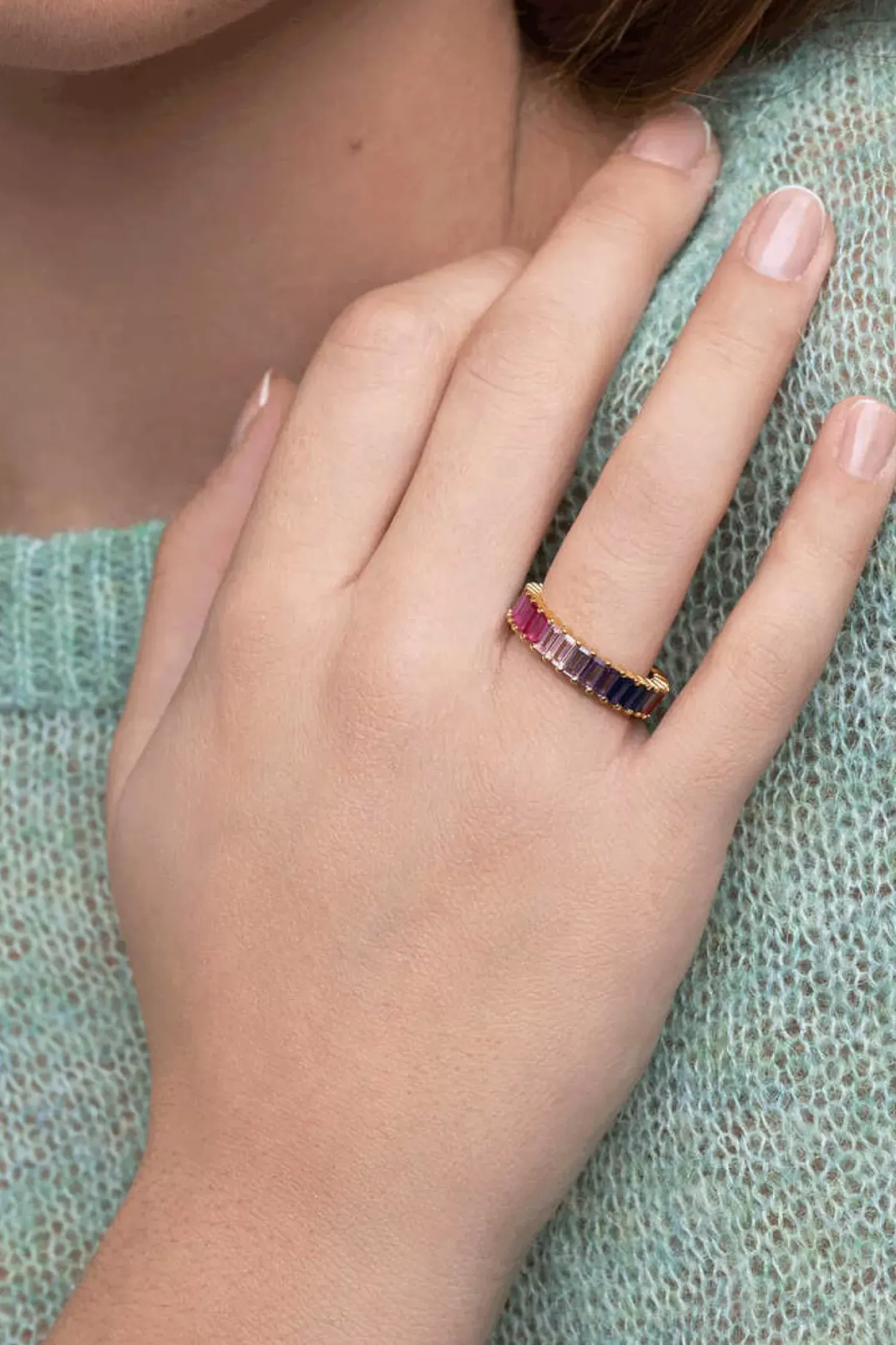 As Cores Do Entardecer, Na Sua Mao. O Anel Sia Berries Prata De Lei 925 Banhado A Ouro De 18 Kt Com Baguete De Zirconitas Violetas Realca Qualquer Visual. A … Estrela De Todos Os Seus Looks. 4 Cores, 4 Posicoes! Escolha O Seu Favorito E Comece A Reluzir.Banhados A Ouro 18 Kt.Ver Mais