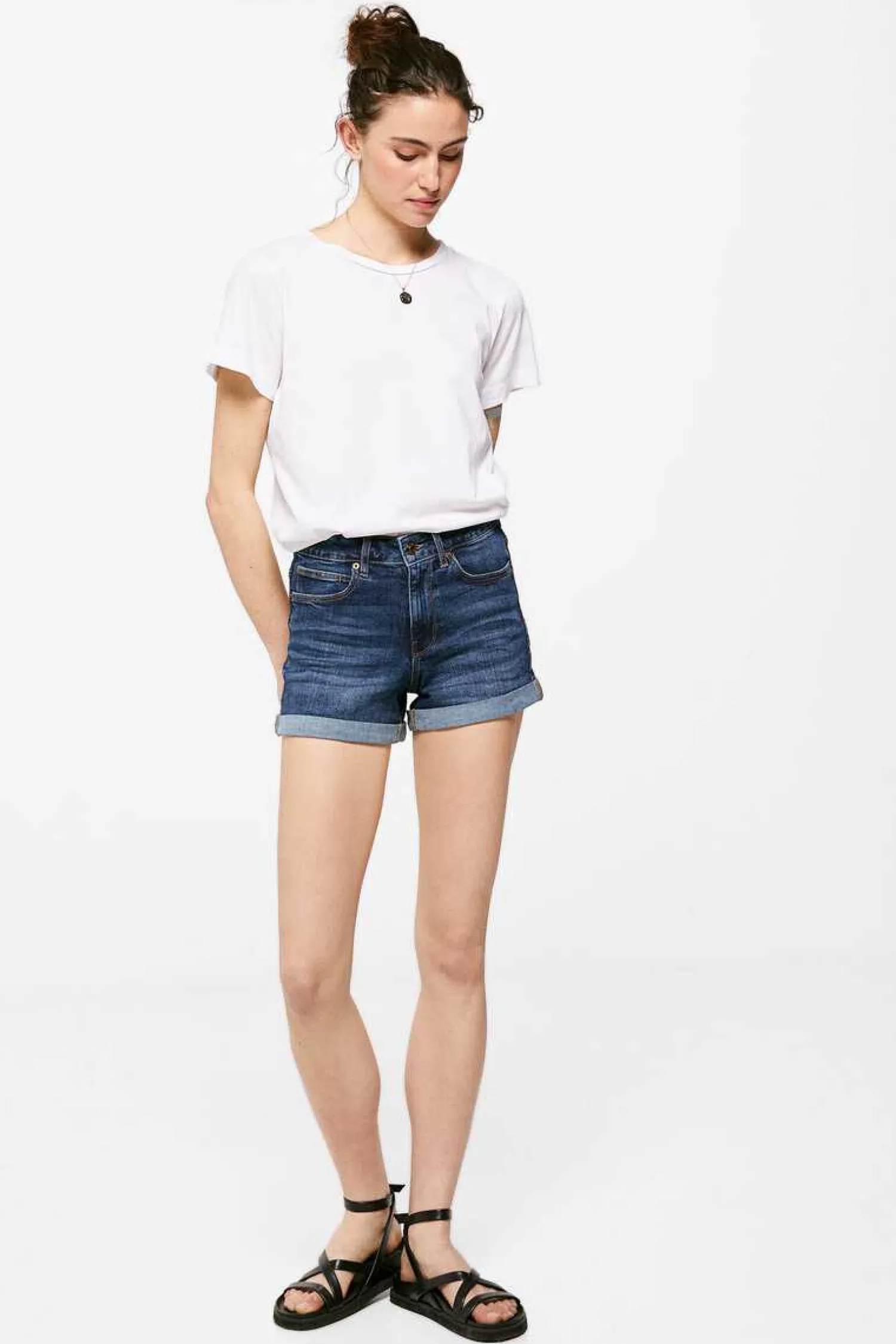 Calcoes Denim De Corte Alto, Com Bolsos A Frente E Atras, Com Fecho De Botao E Fecho-Eclair, Com Dobra Na Perna. Projeto Reconsider: Utilizamos Um Inovador Sist … Ema De Lavagem, Que Reduz A Utilizacao De Quimicos, Agua E Energia Relativamente Aos Metodos De Lavagem Convencional.Ver Mais