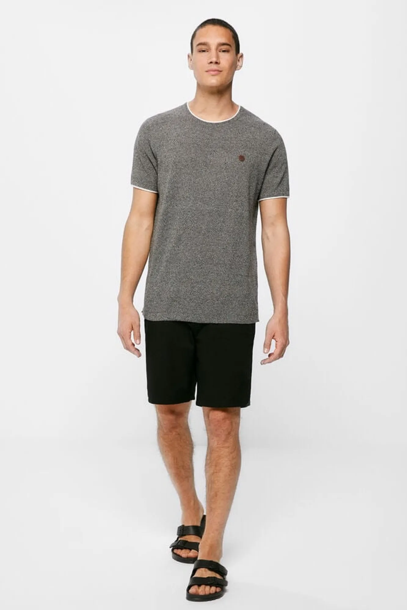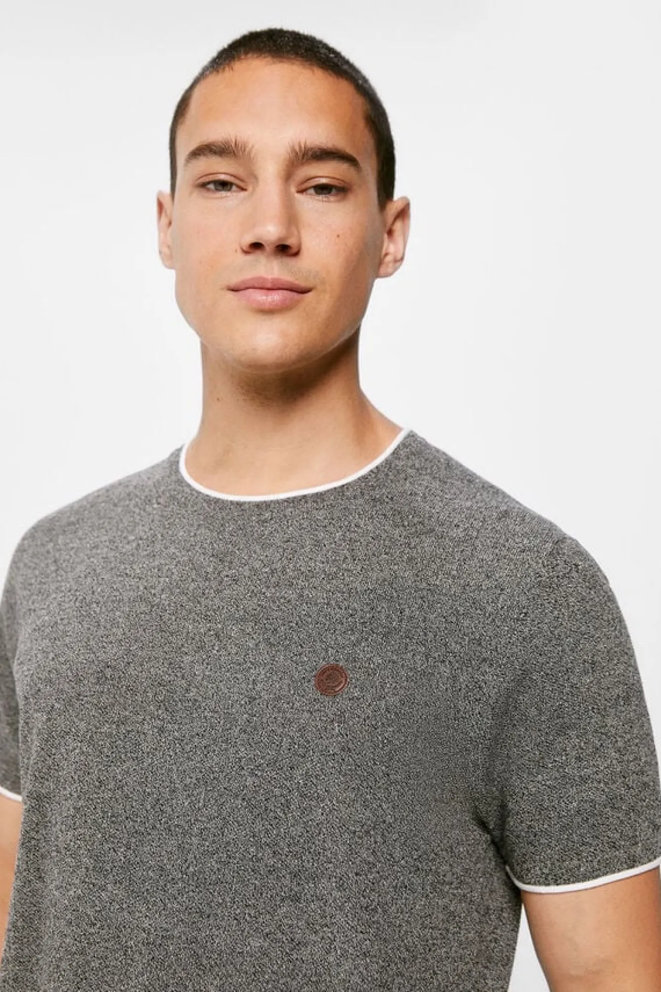 Camisola Manga Curta Algodao Reciclado E Poliester Reciclado Em Torcal Com Estrutura. Detalhe Duplo Na Gola. Etiqueta Decorativa No Peito. Colecao Reconsider.