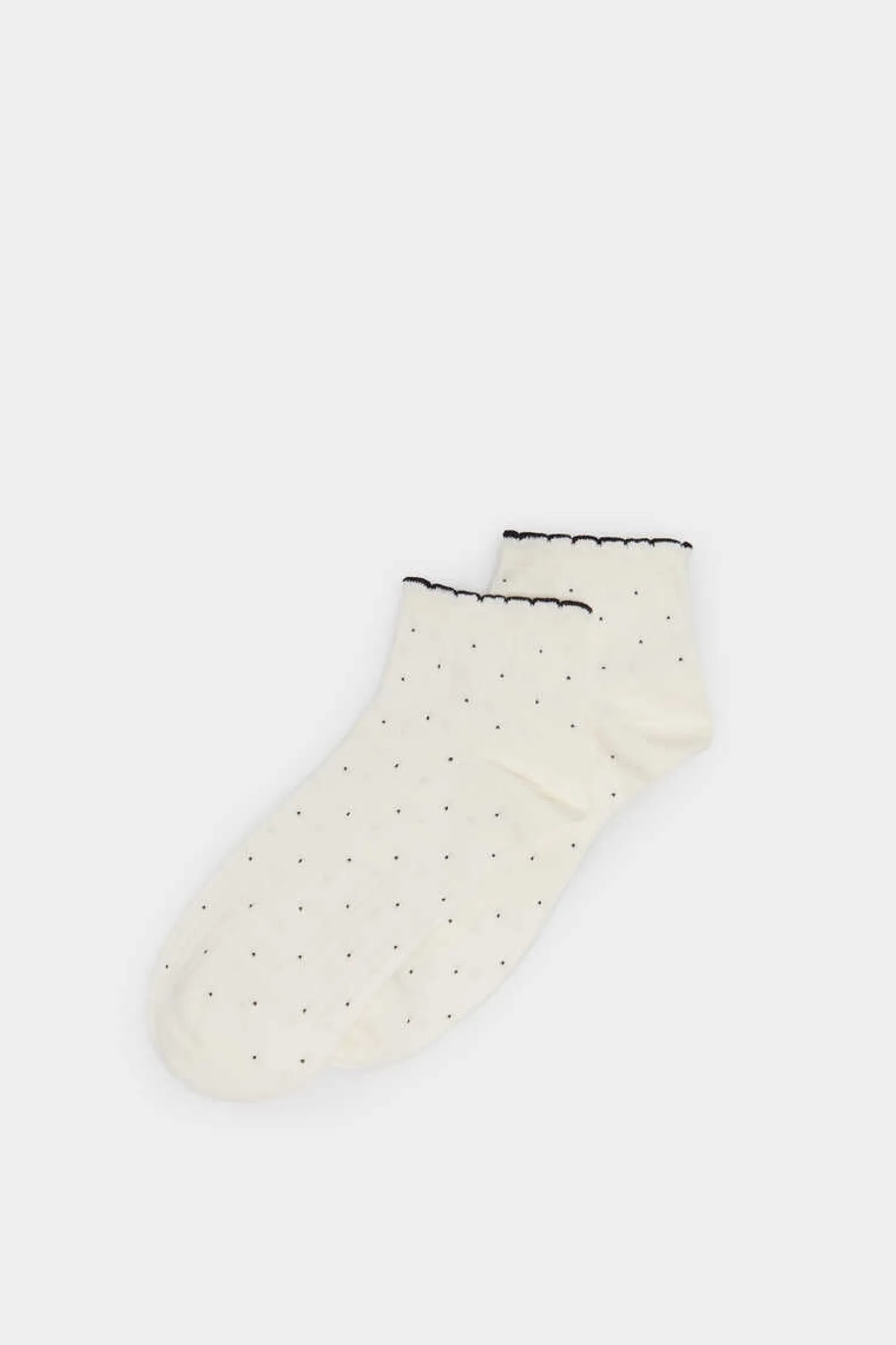 Meia Curta Com Canelado, Com Bolinhas, Com Mini Folhos Nos Canos E Com Contraste De Cor.