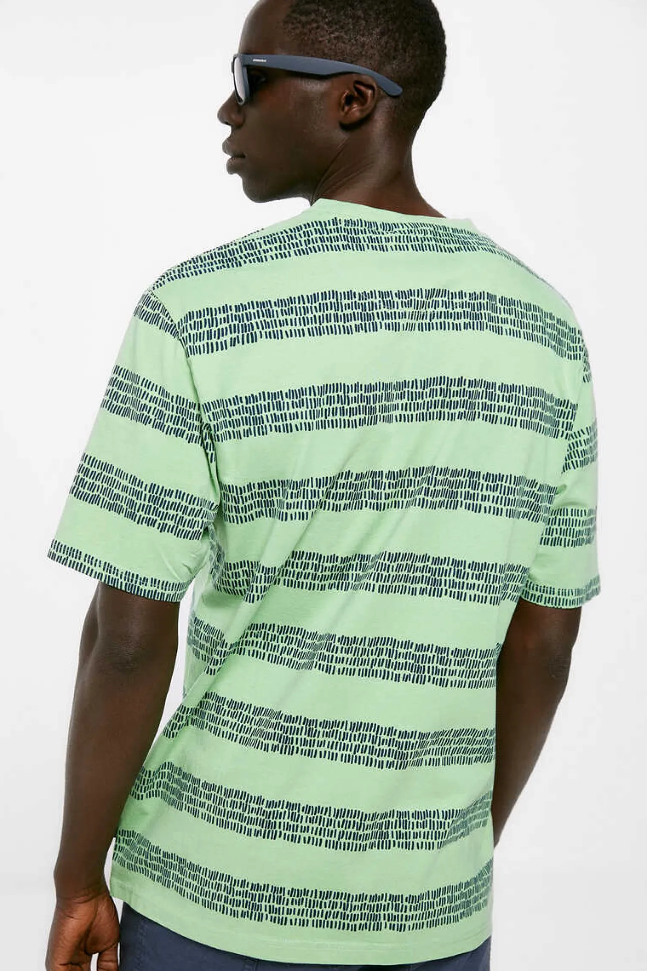 T-Shirt De Manga Curta Regular Fit Com Estampado De Risca Texturizada. Colecao Reconsider.