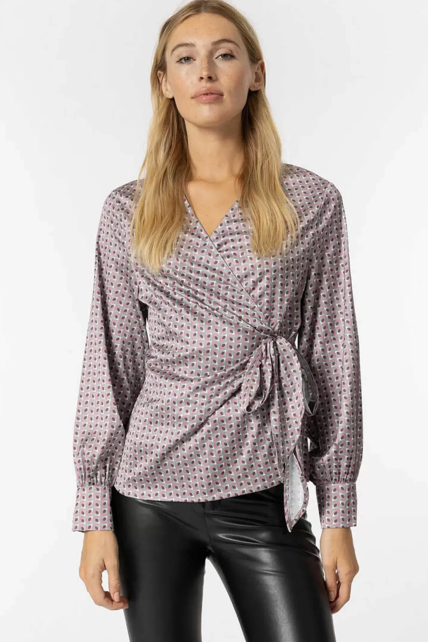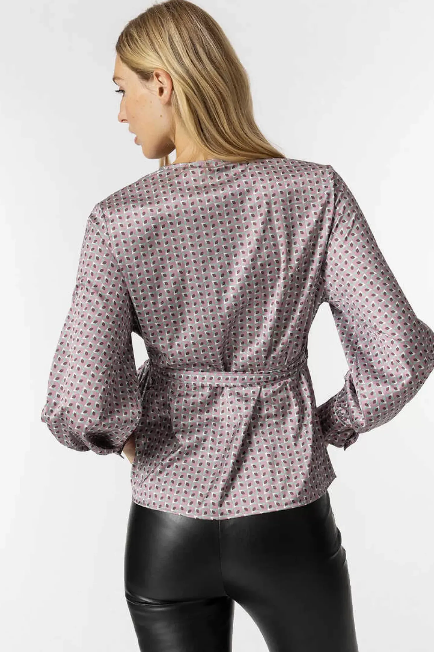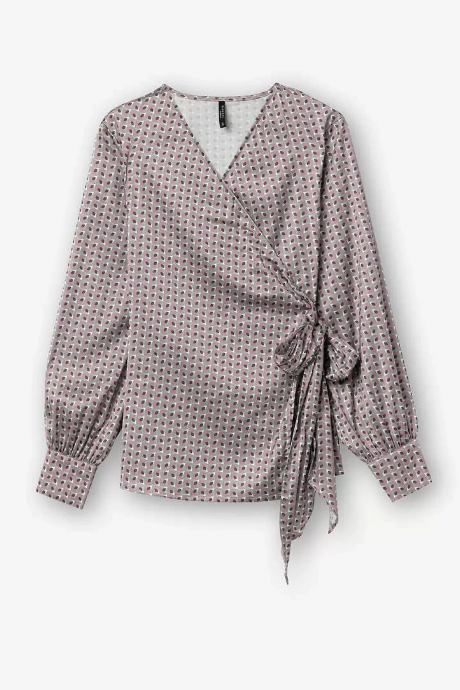 Blusa De Decote Cruzado E Manga Comprida Com Botoes Nos Punhos. Estampado All Over. Fecho Cruzado Com Lacada. Altura Do Modelo: 178 Cm | Tamanho: S