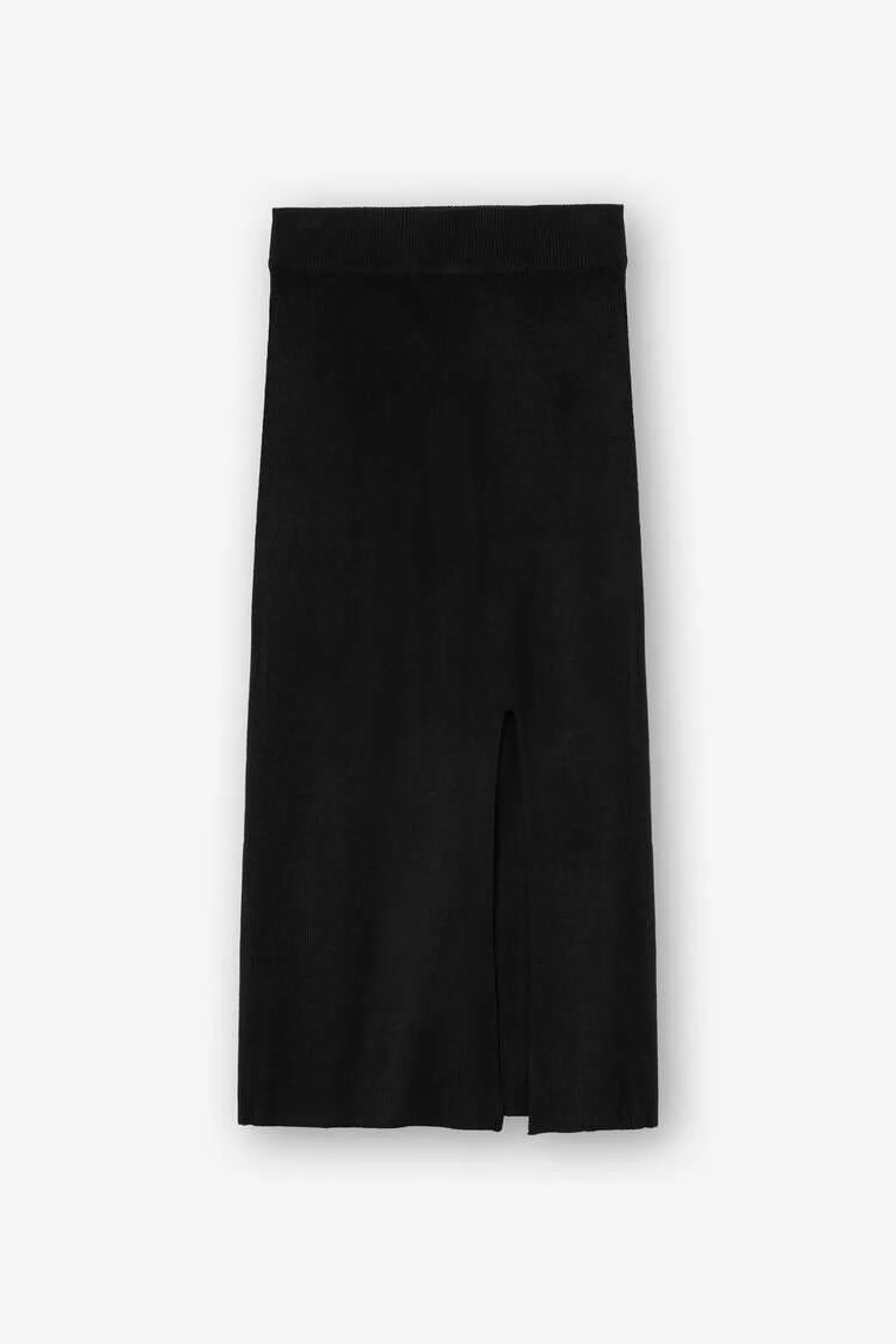 Saia Midi De Cintura Alta Com Cintura Elastica. Abertura Frontal. Altura Do Modelo: 178 Cm | Tamanho: S