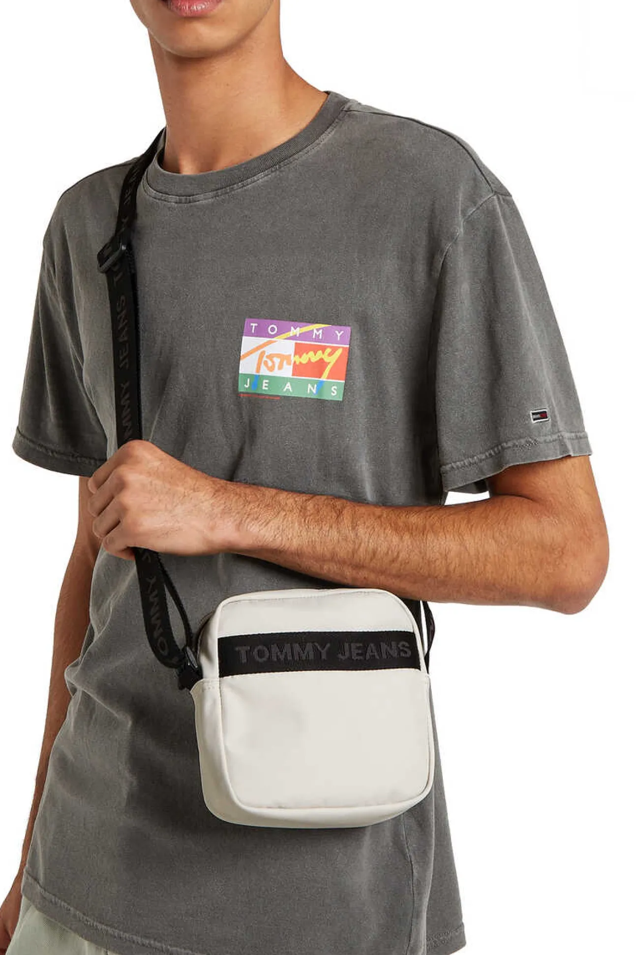 Umhangetasche Tommy Jeans, In Weis, Zu 100 % Hergestellt Aus Recyceltem Polyester. Logo Tommy Jeans Auf Dem Verstellbaren Riemen. Reisverschluss.