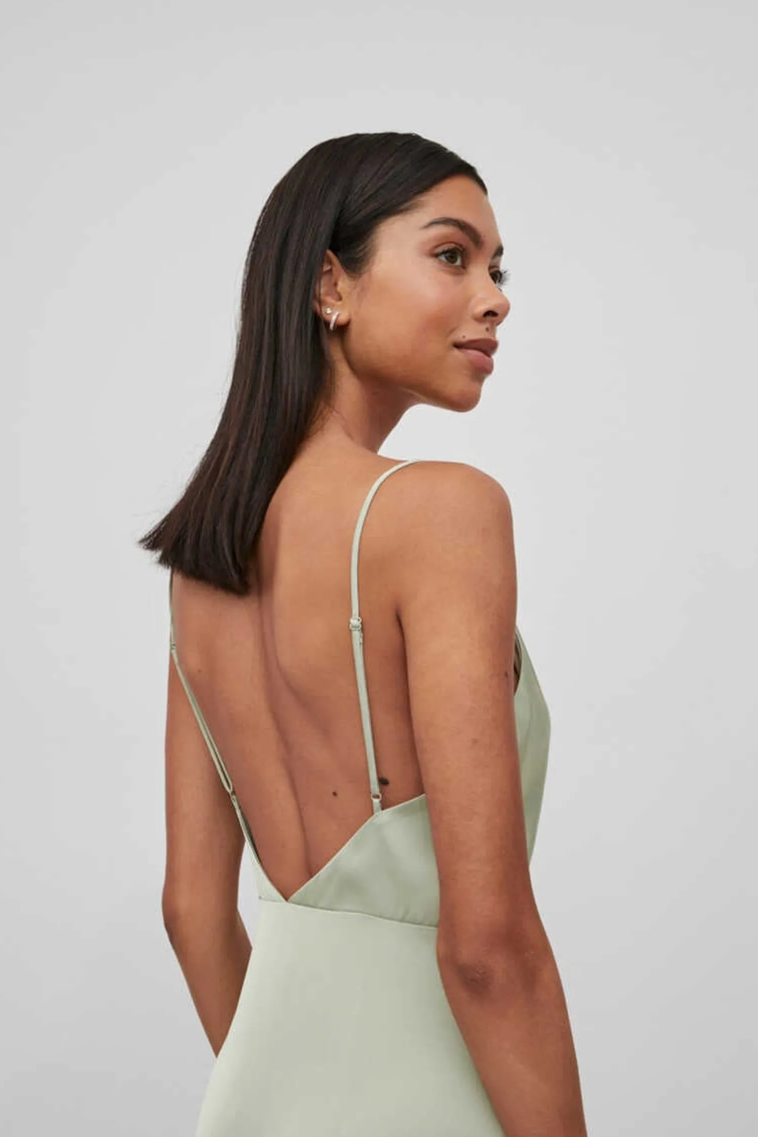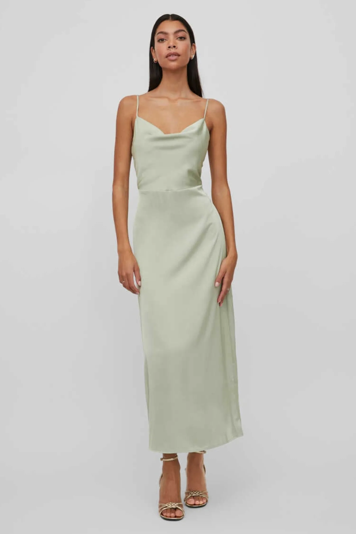 Vestido Combinacao. Comprimento A Altura Do Tornozelo. Costas Abertas Terminadas Em Bico. Alcas Ajustaveis.