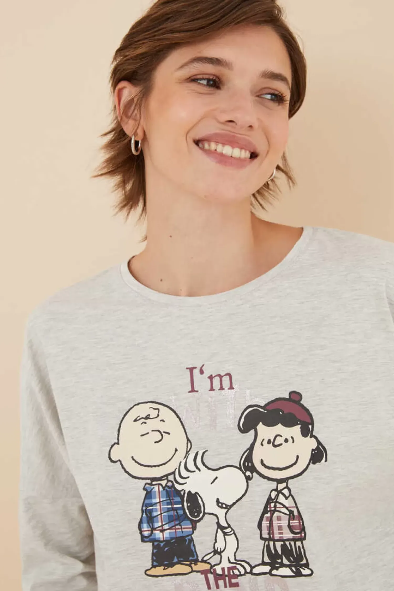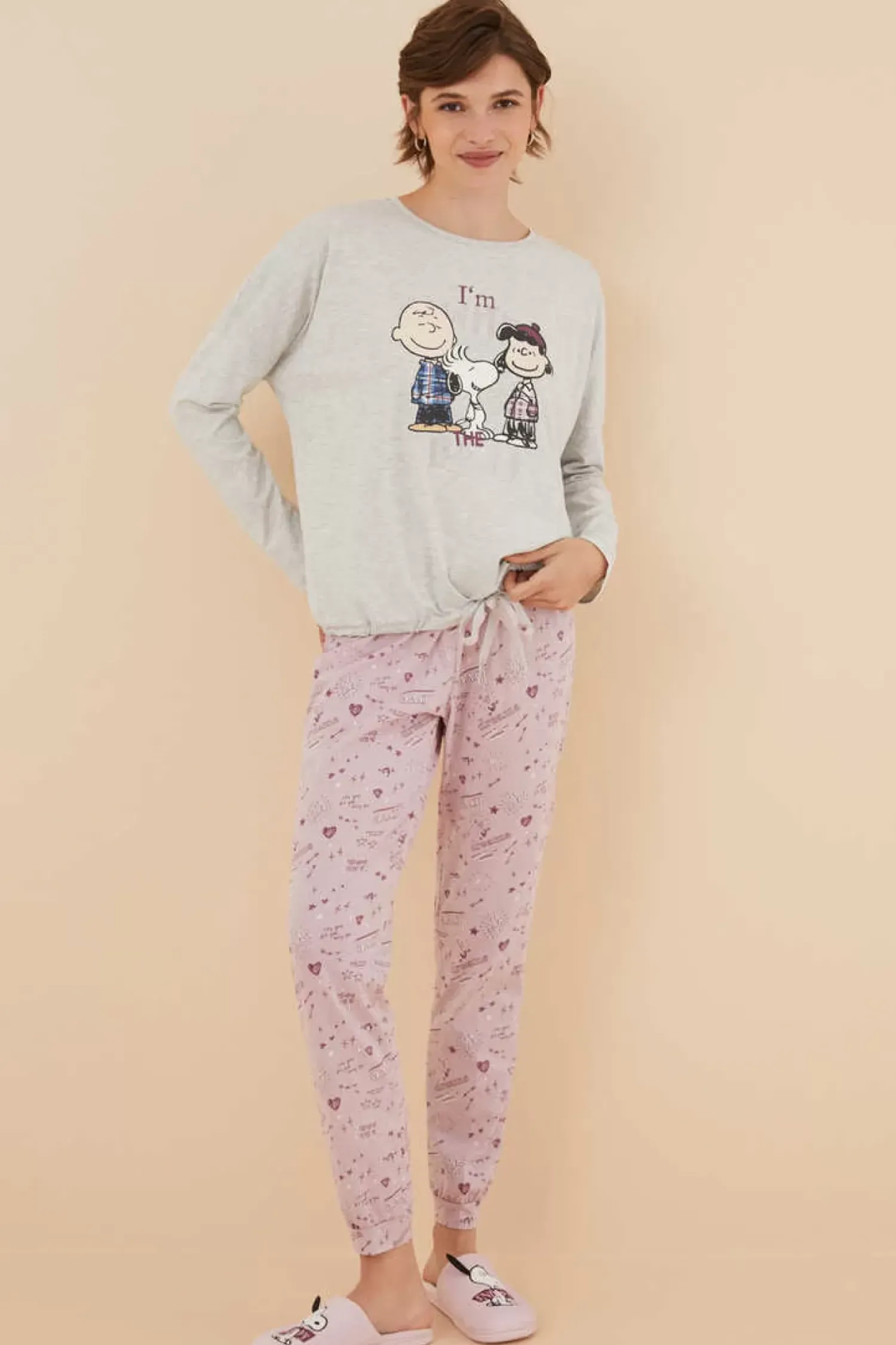 Pijama 100% Algodao De Manga Comprida E Calcas Compridas Com Divertido Estampado Do Snoopy & Cia. Perfeito Para Dormir Ou Estar Em Casa Com Estilo.