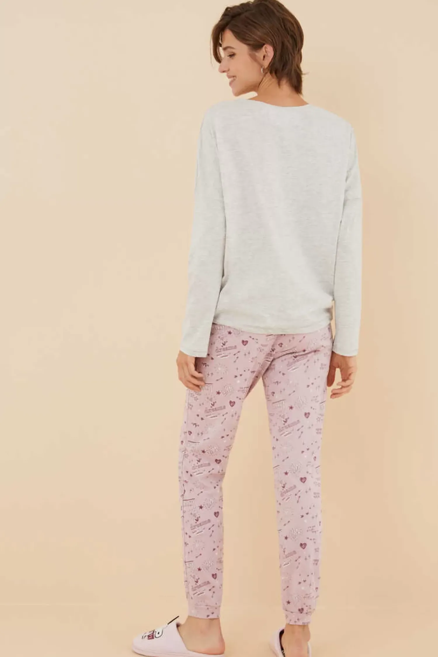 – Calcas Rosa Com Estampado Allover De Tematica Romantica, Cintura E Bainha Com Borracha.