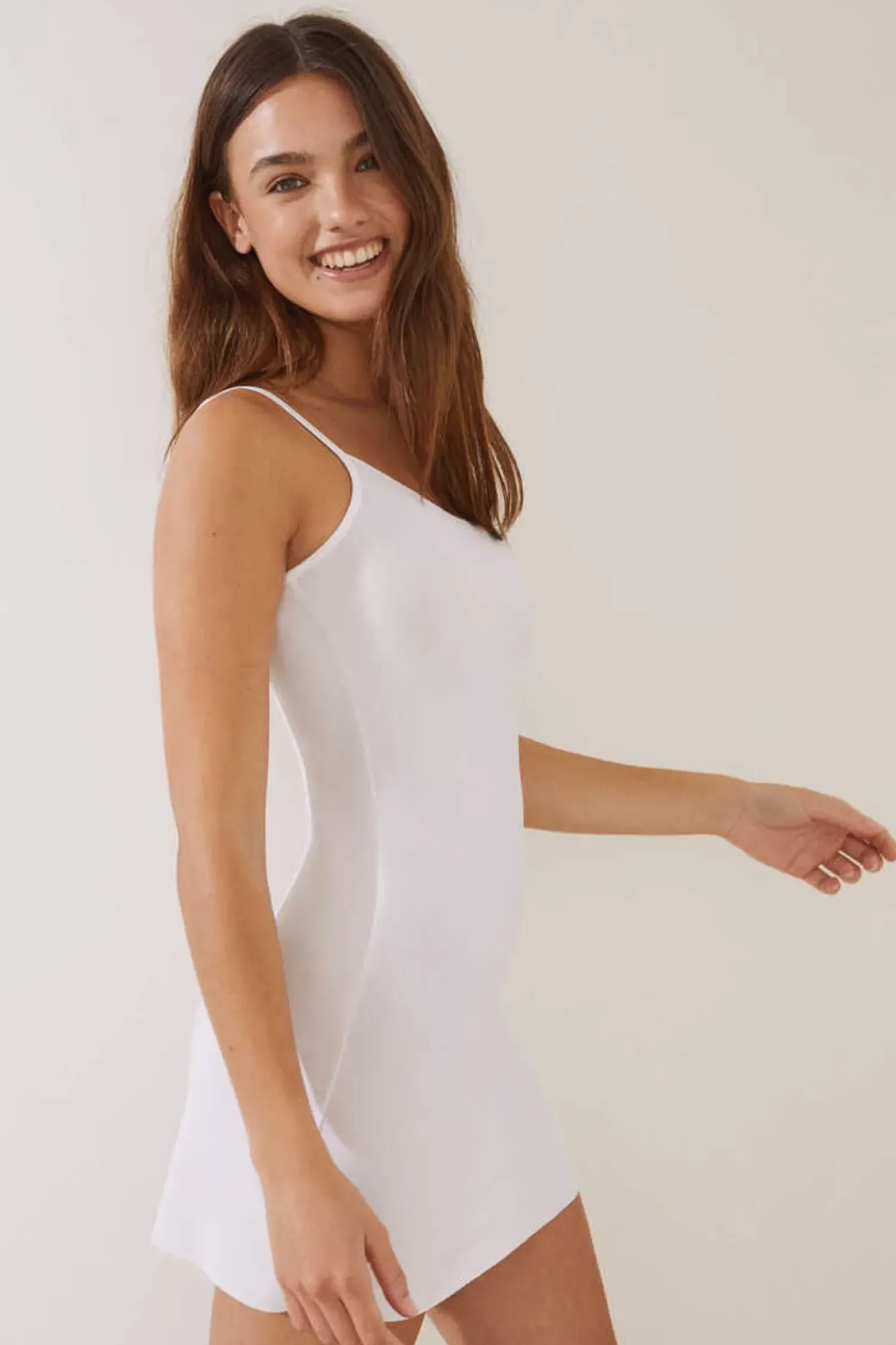 Seamless Thigh Hight Strapless Slip. Adjustablestraps.